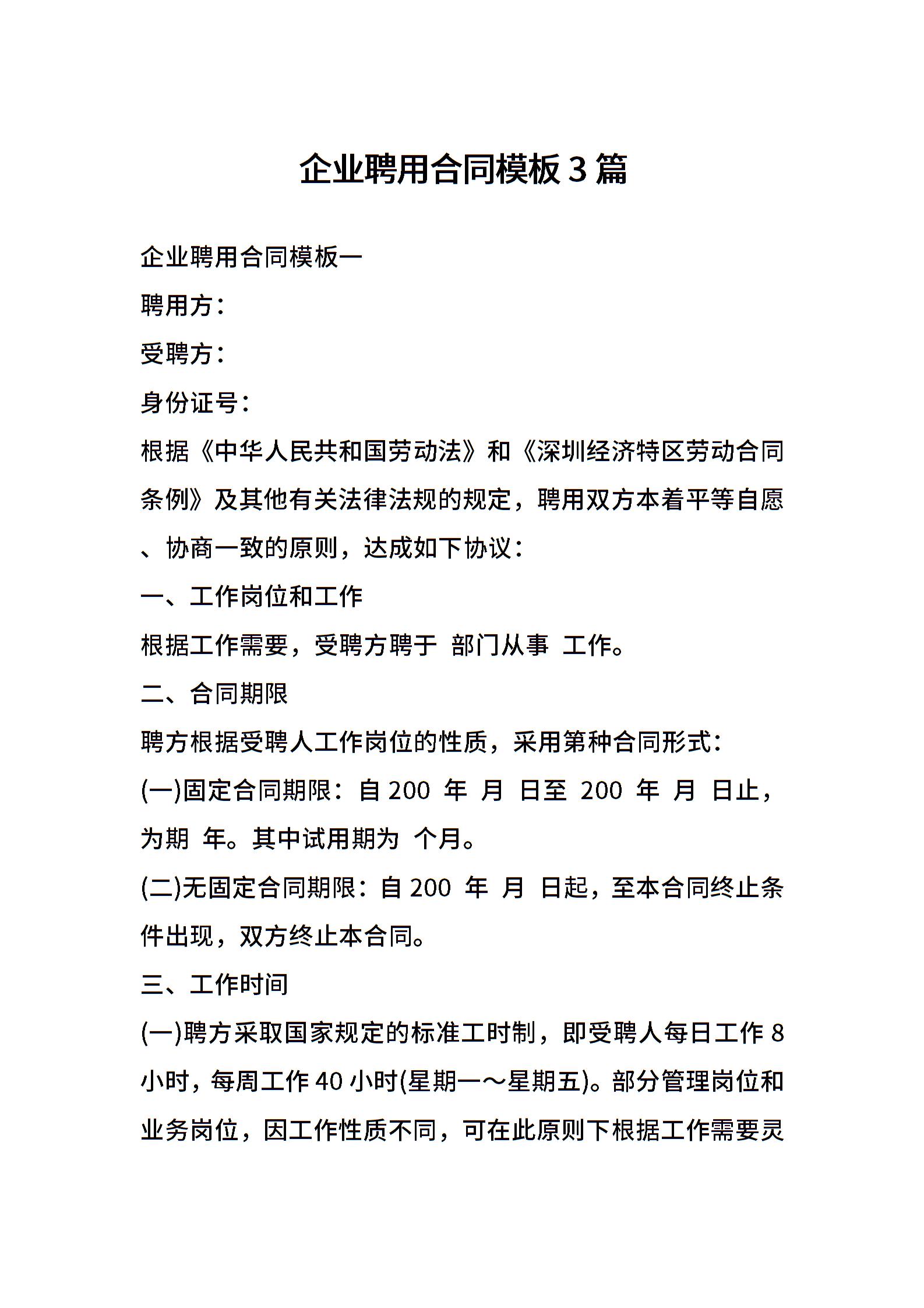 企业聘用合同模板3篇