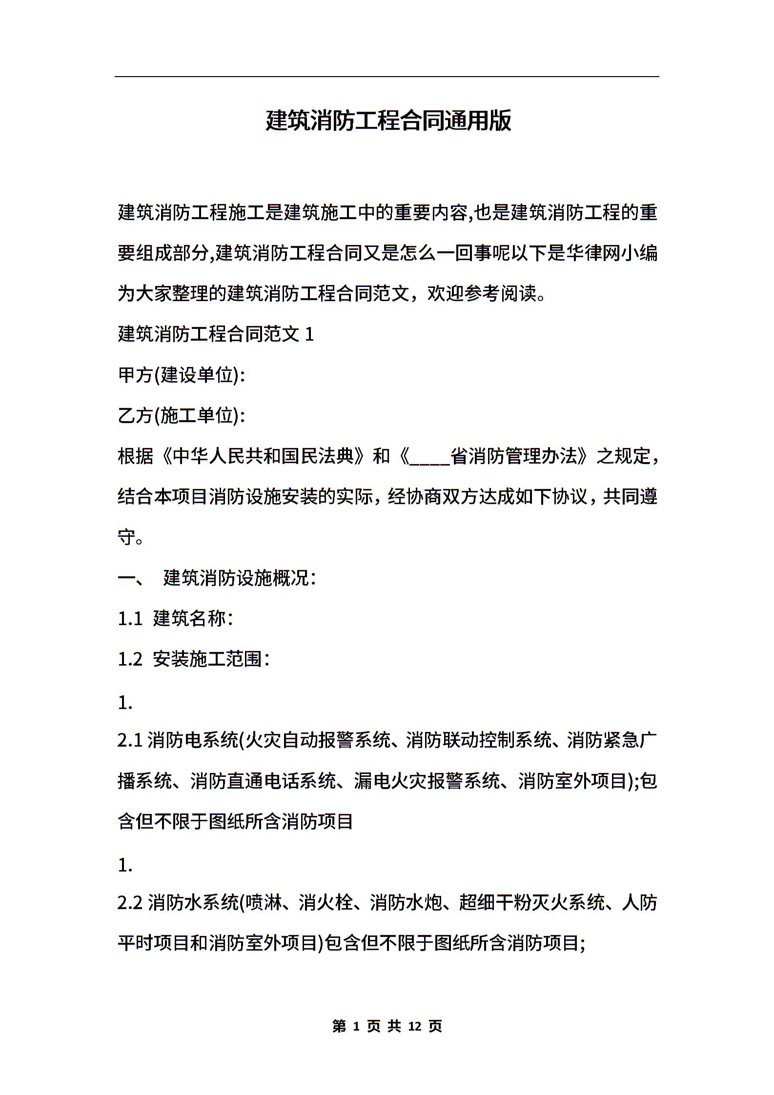 建筑消防工程合同通用版