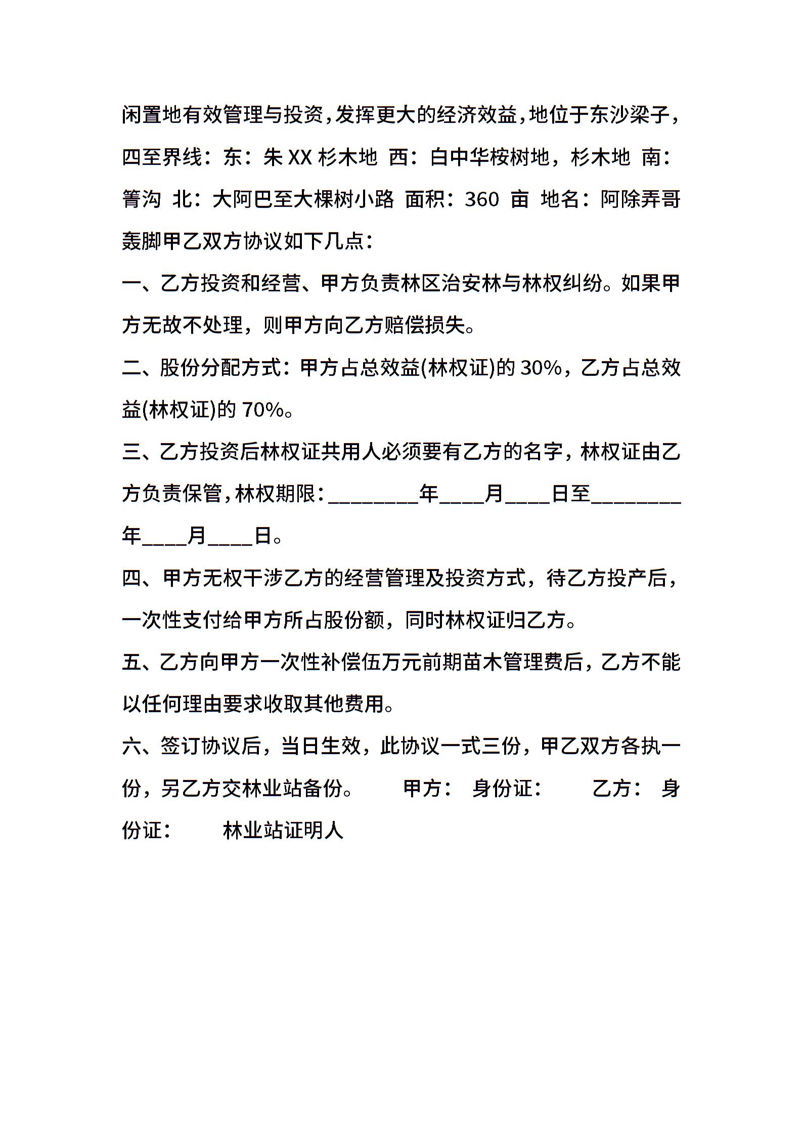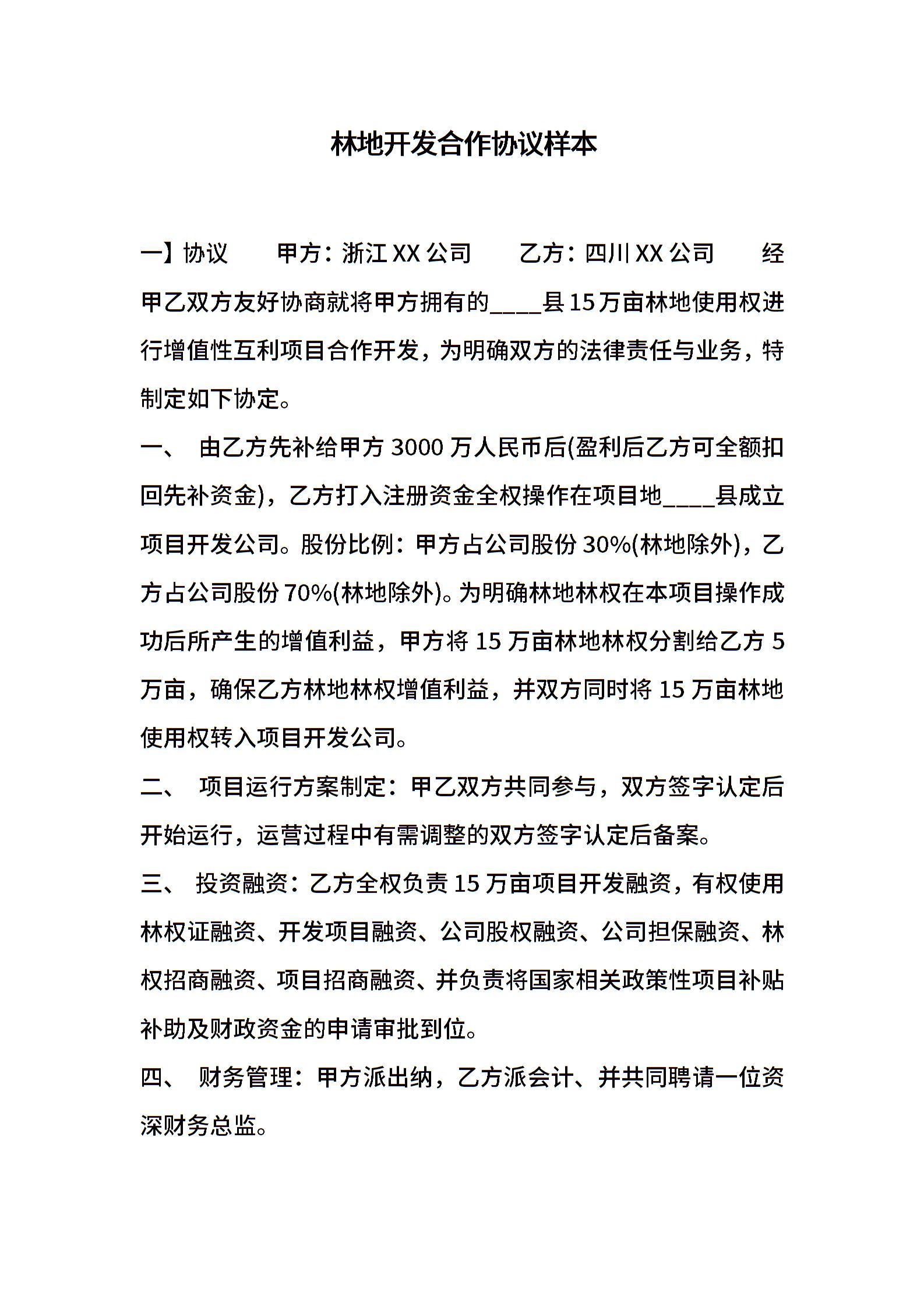 林地开发合作协议样本