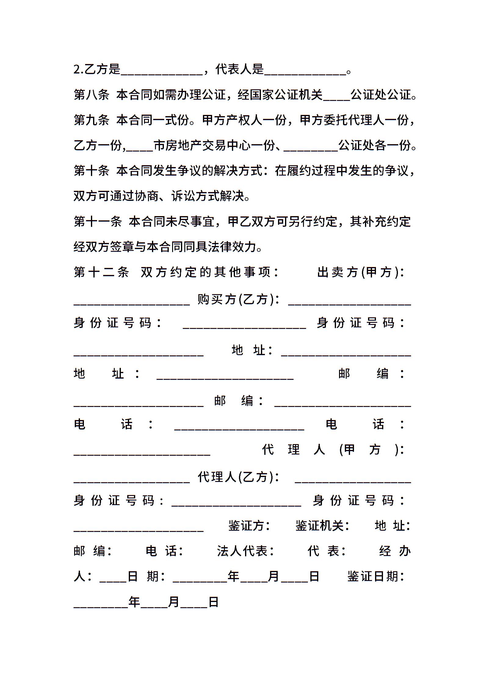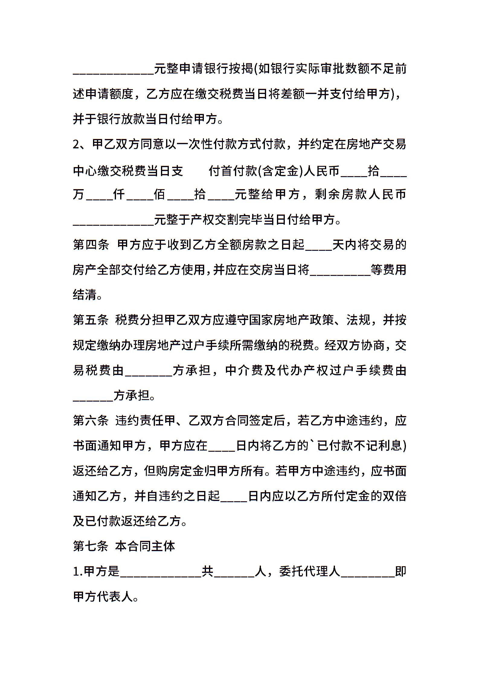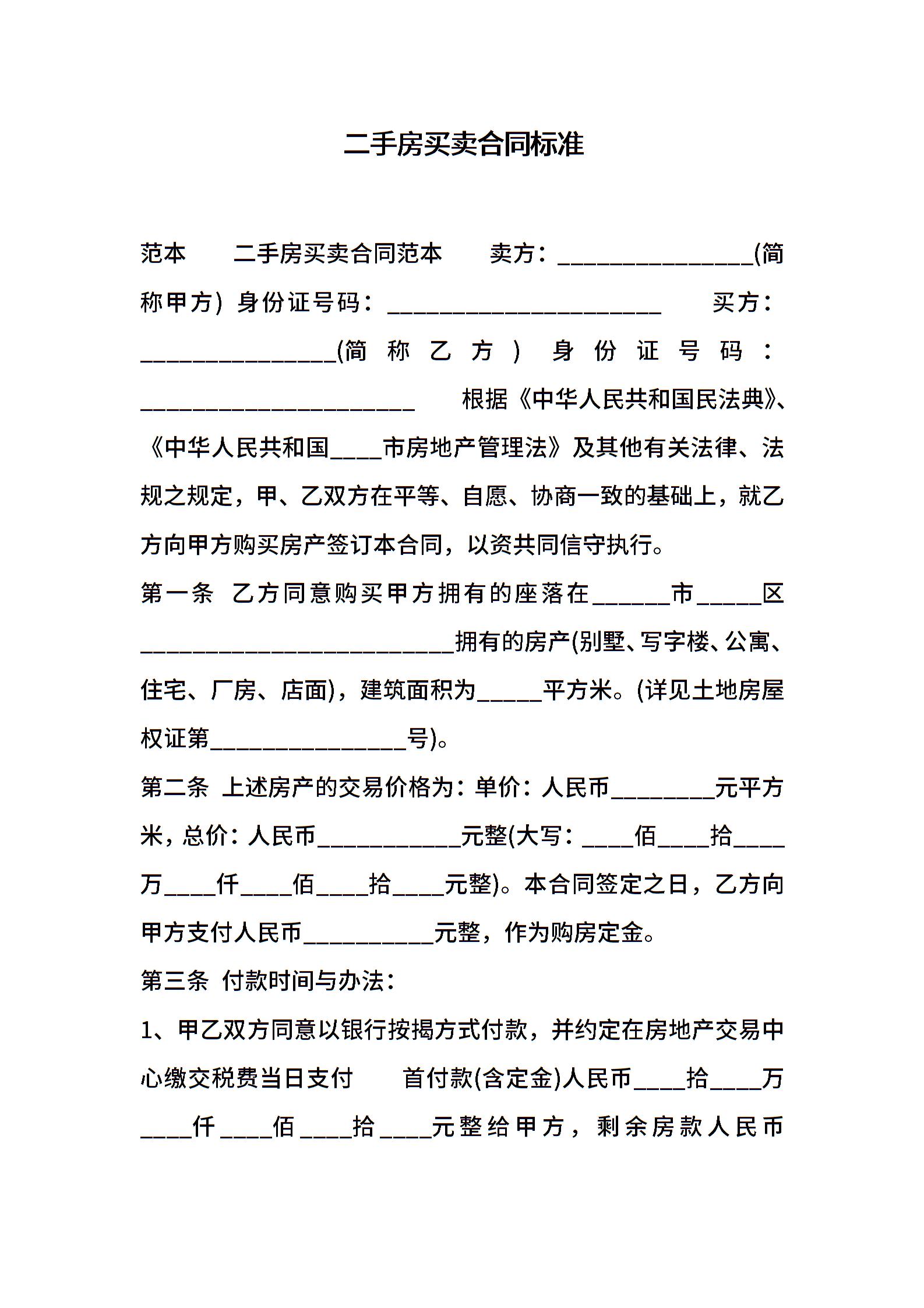 二手房买卖合同标准