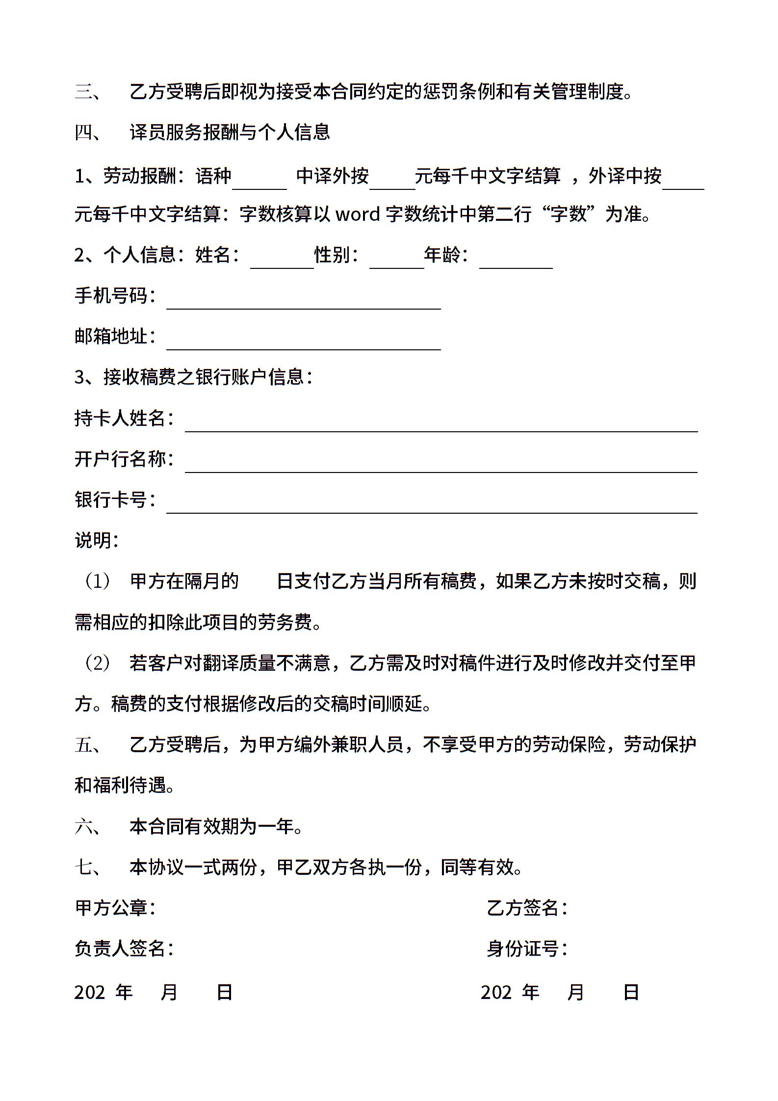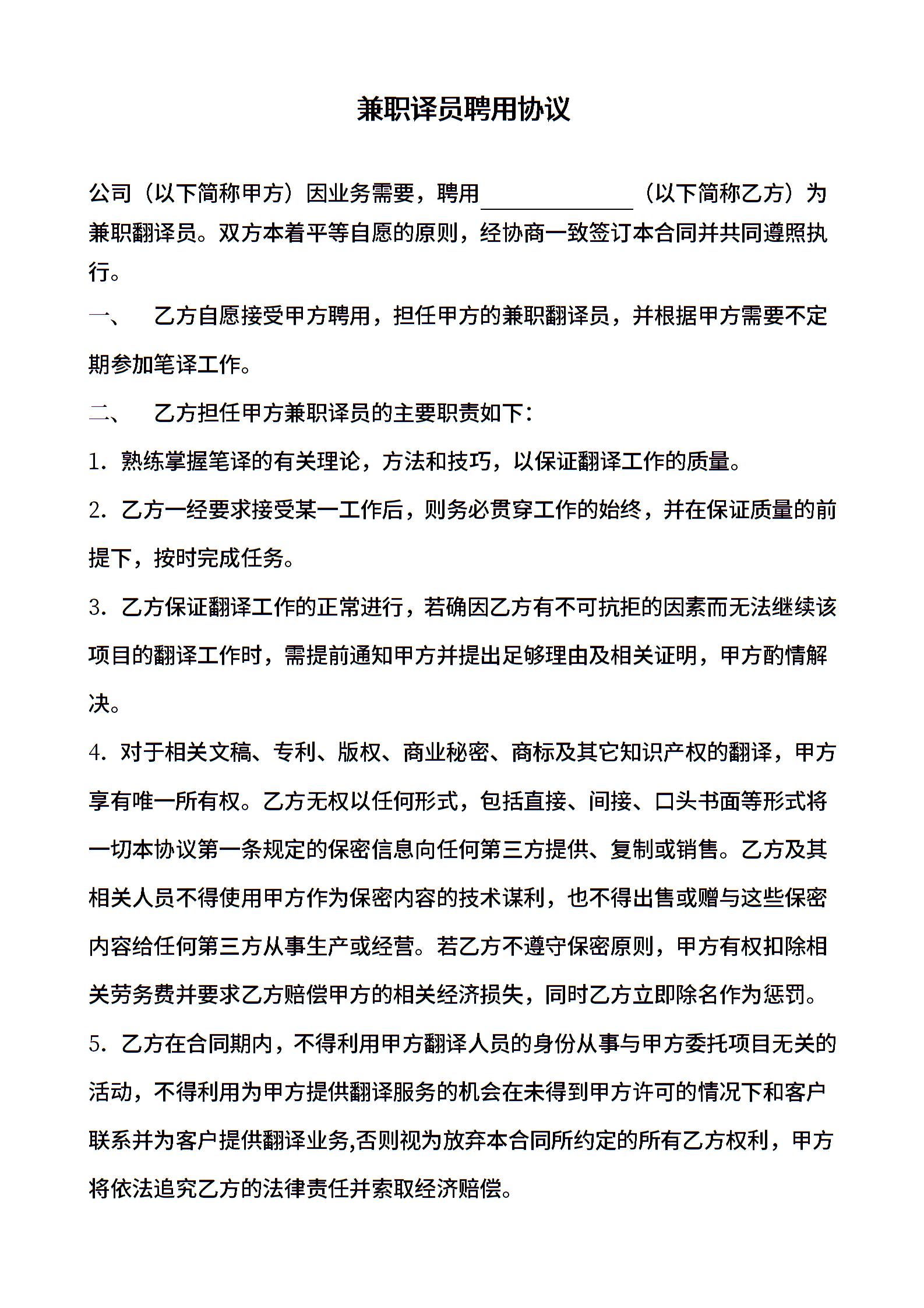 兼职翻译通用模板