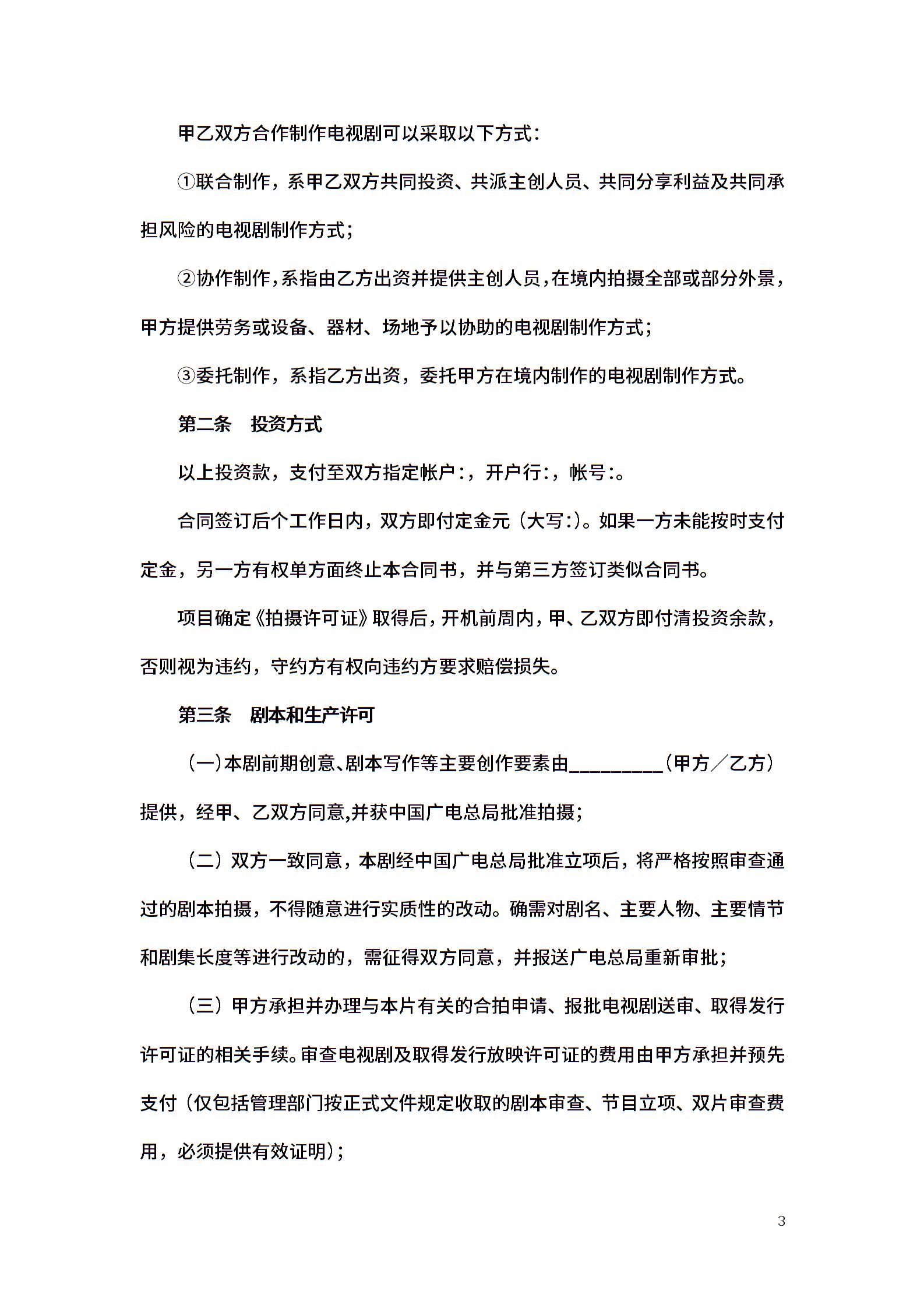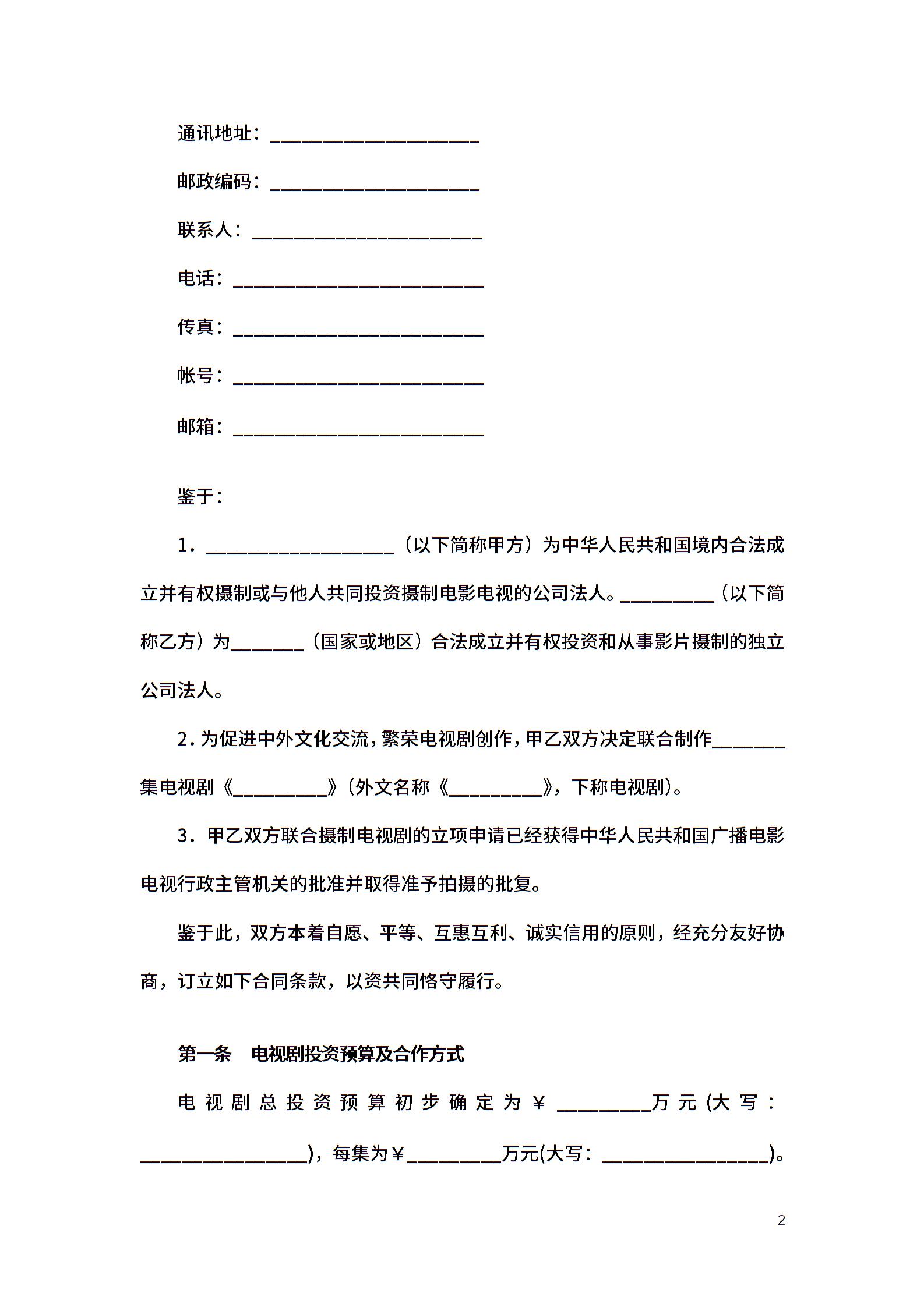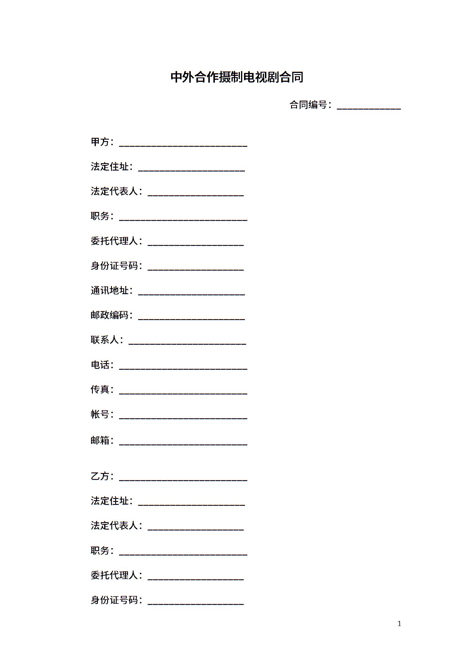 中外合作摄制电视剧合同