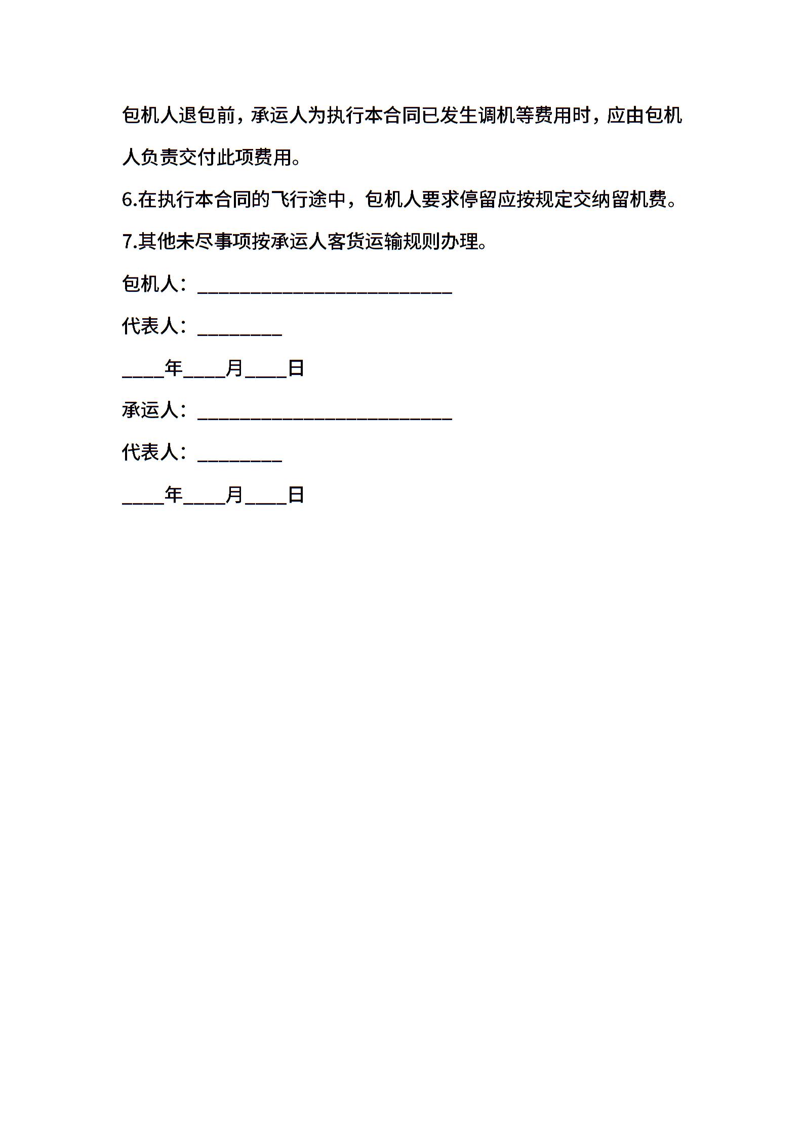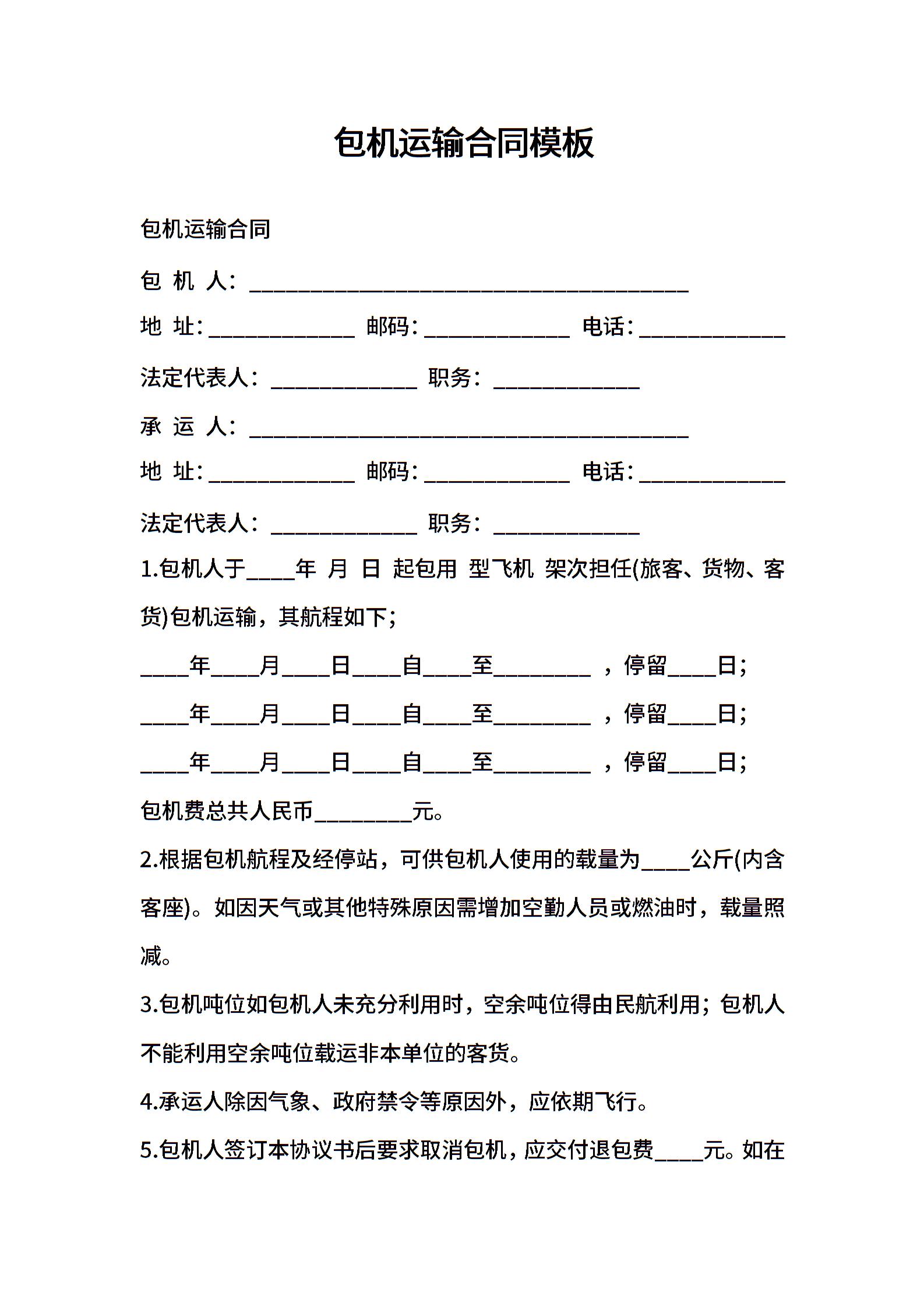 2021年包机运输合同模板