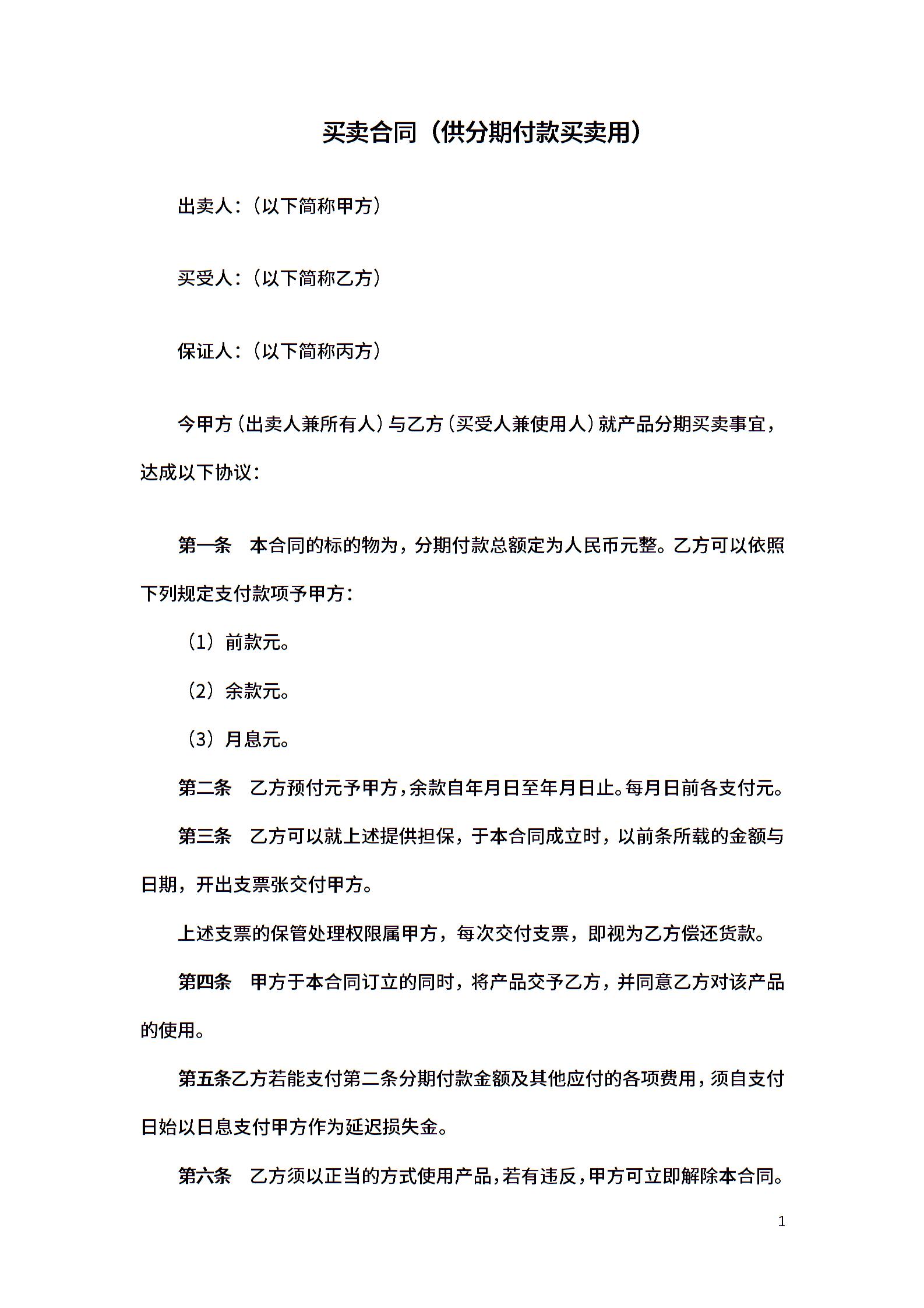 买卖合同(供分期付款买卖用)-