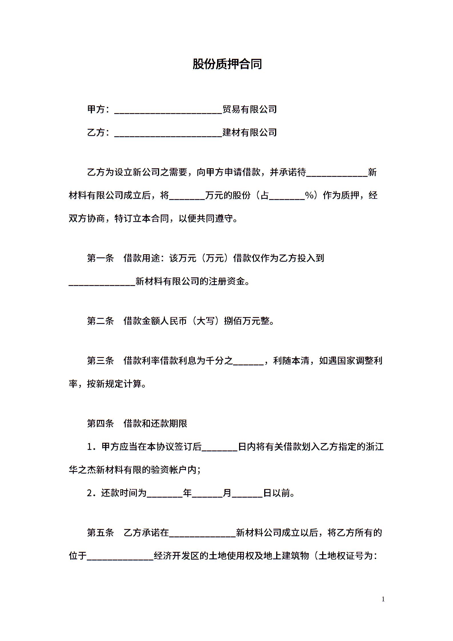 股份质押合同范本