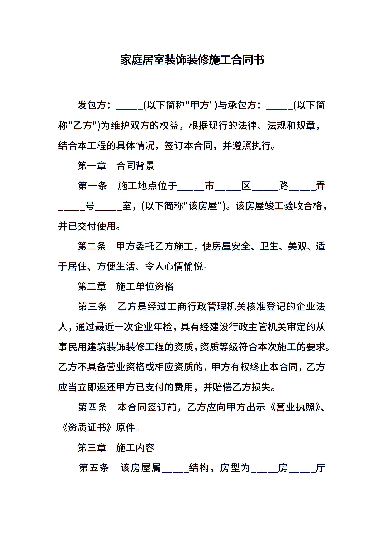 家庭居室装饰装修施工合同书