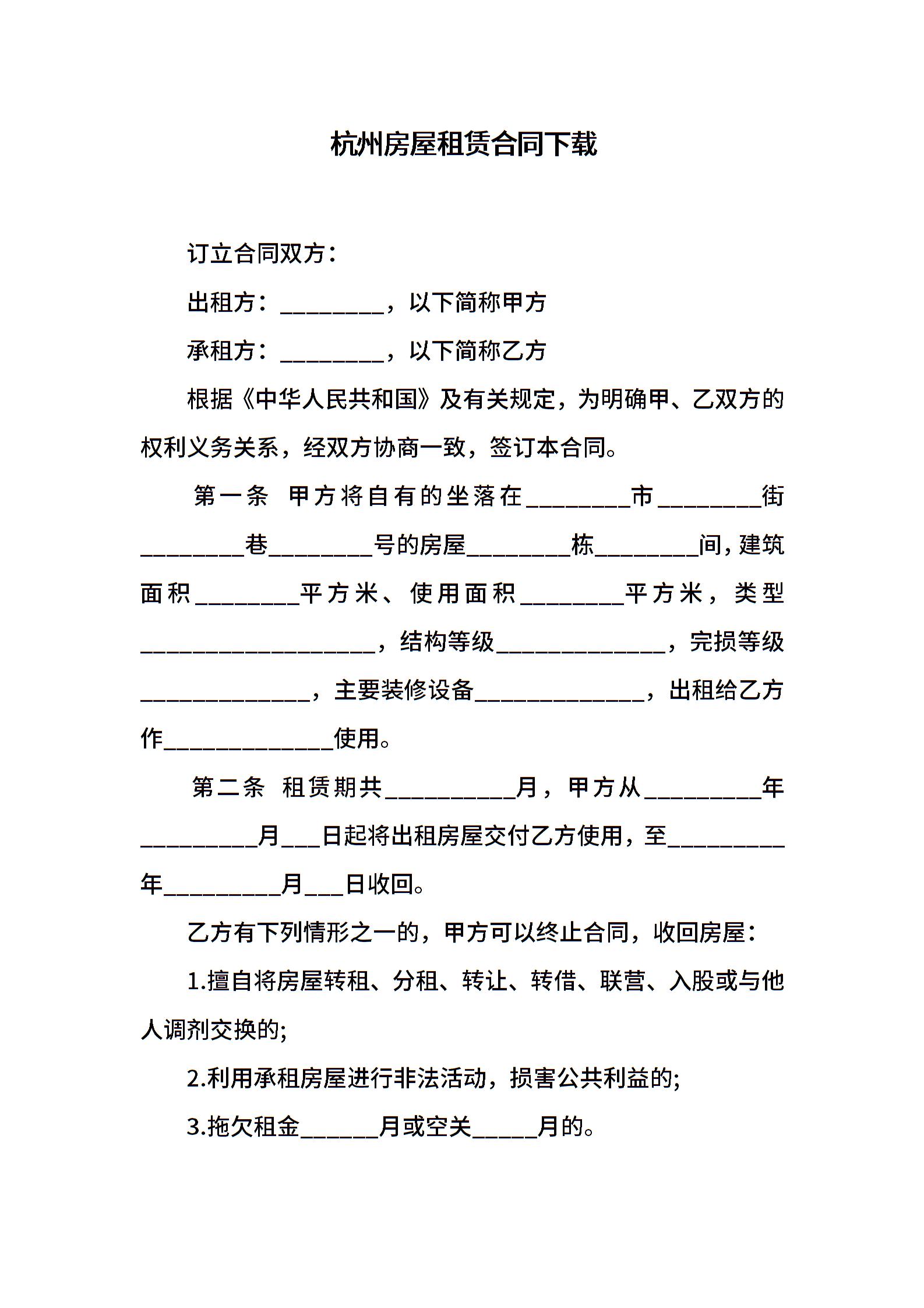 杭州房屋租赁合同下载