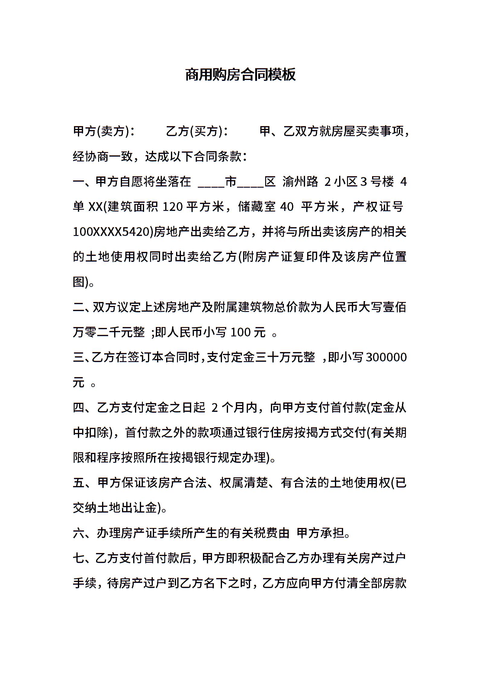 商用购房合同模板