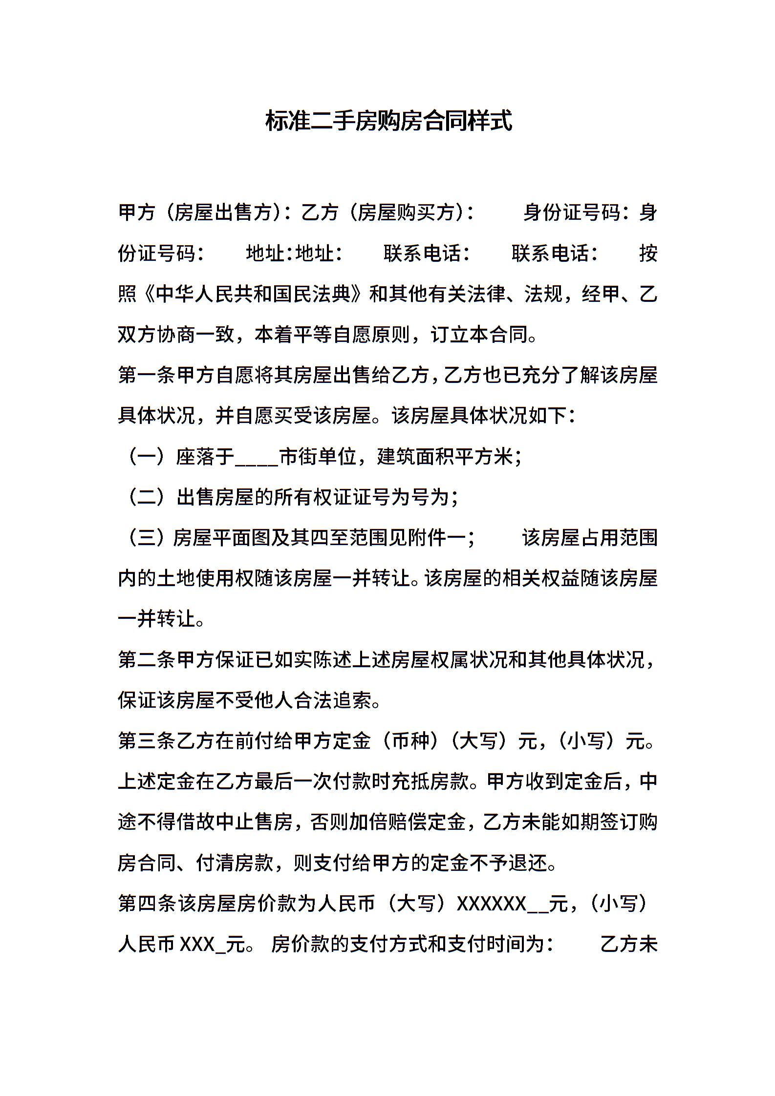 标准二手房购房合同样式
