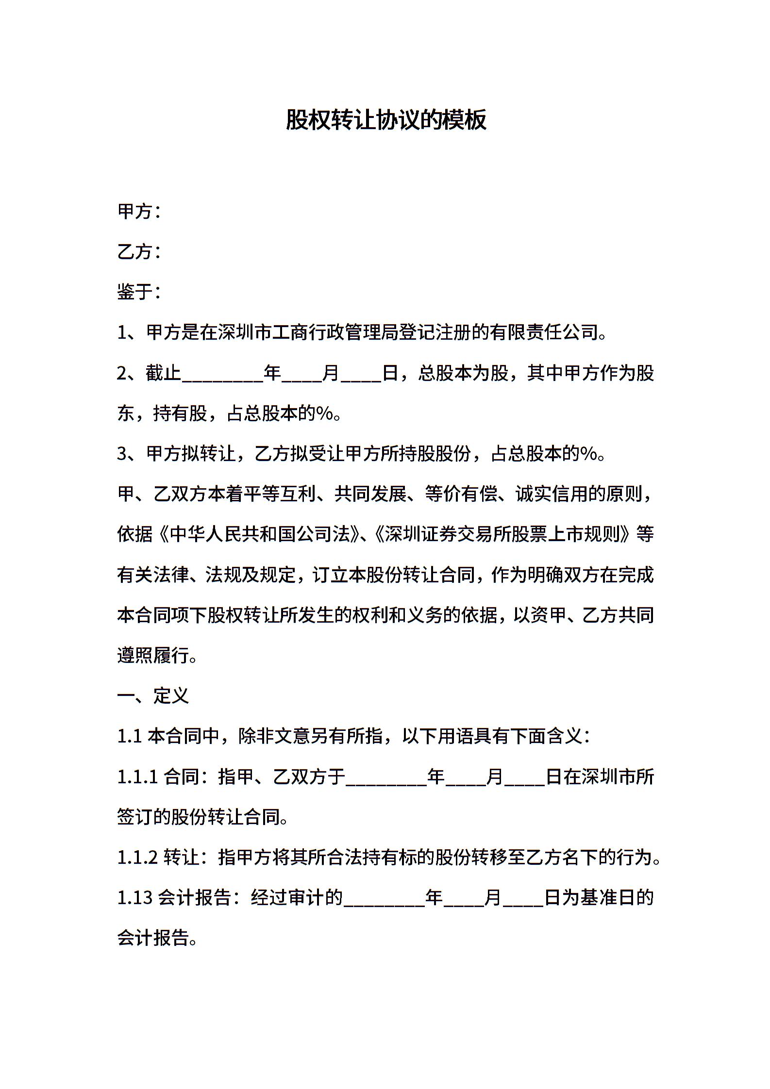 当前位置:量子办公 > 合同模板 > 股权转让协议 >