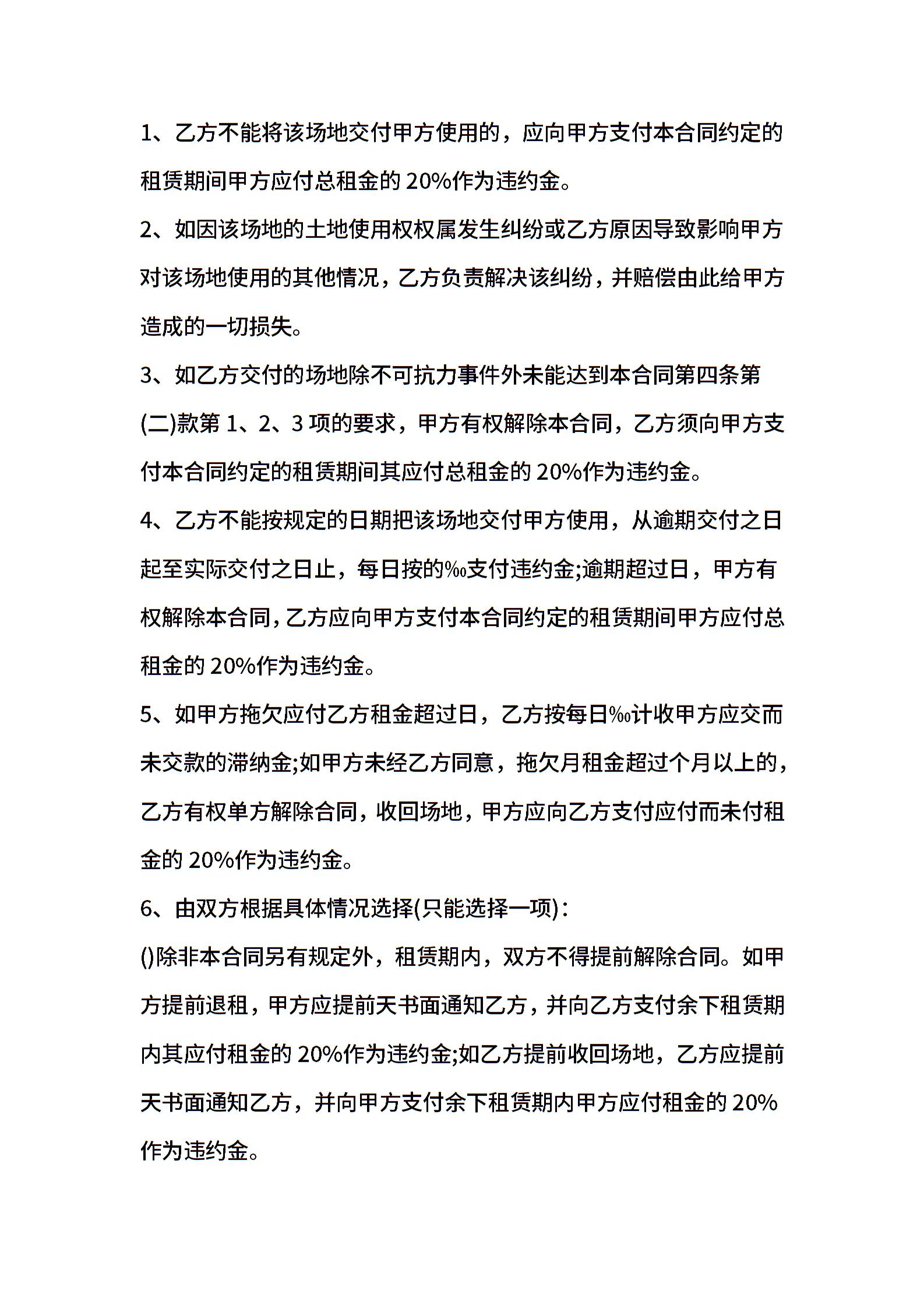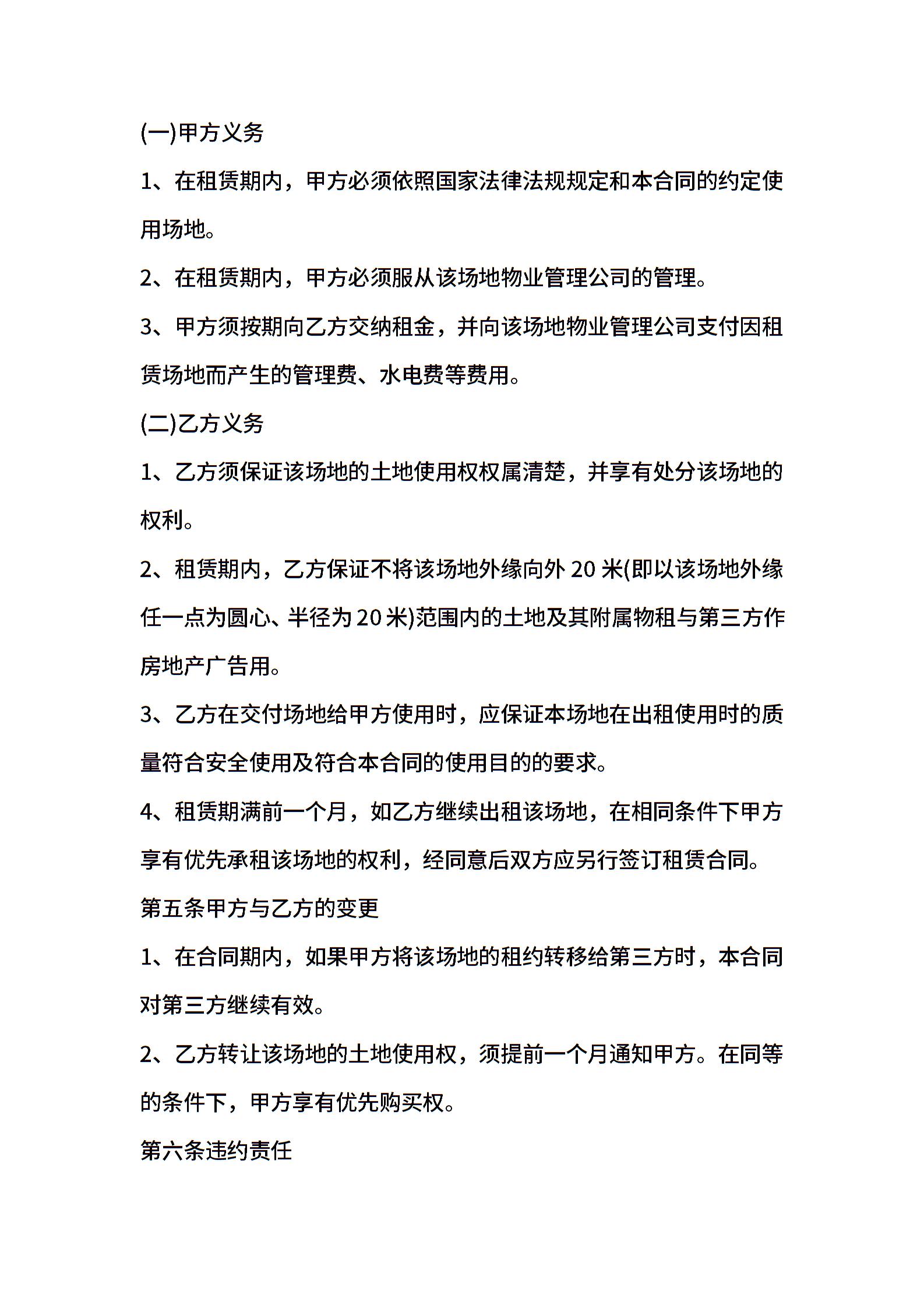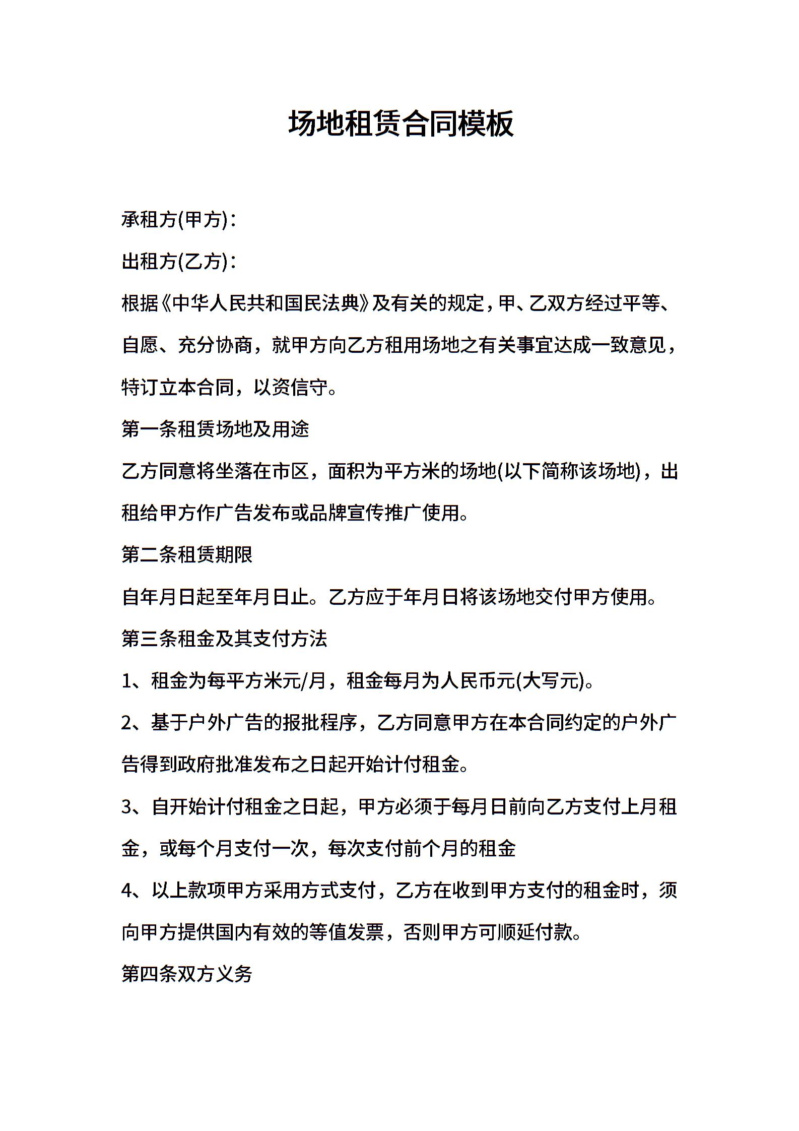 2021年场地租赁合同模板