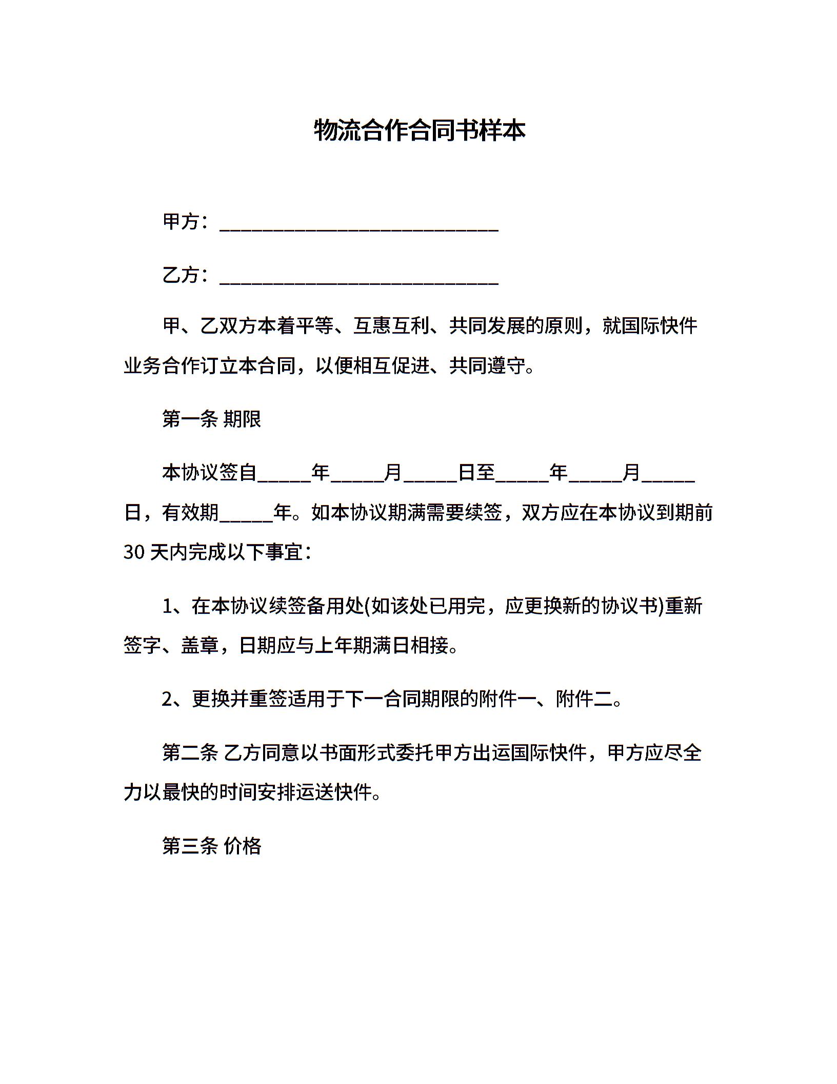 物流合作合同书样本