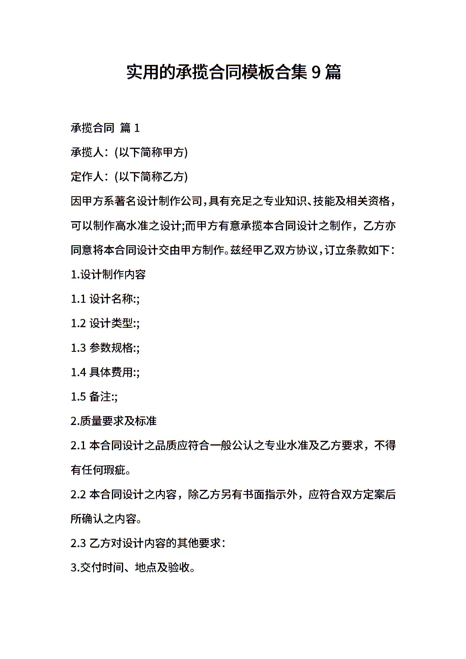 实用的承揽合同模板合集9篇