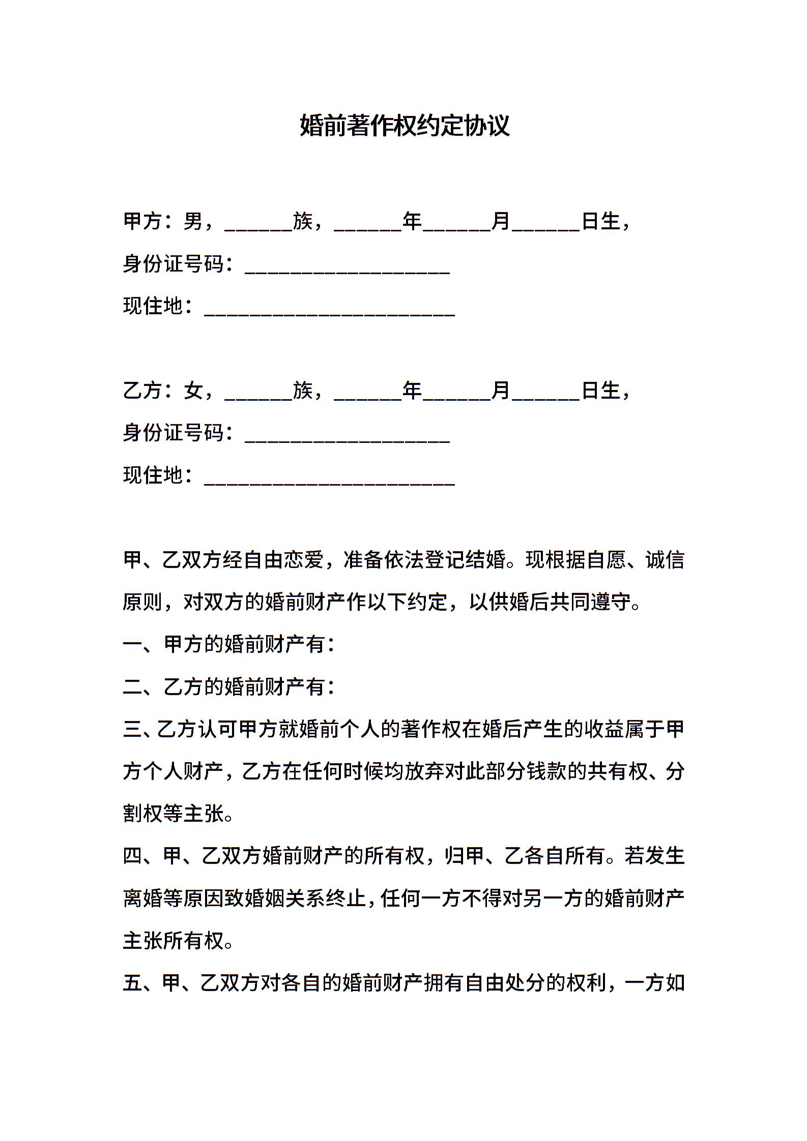 当前位置:量子办公 > 合同模板 > 婚前协议 >