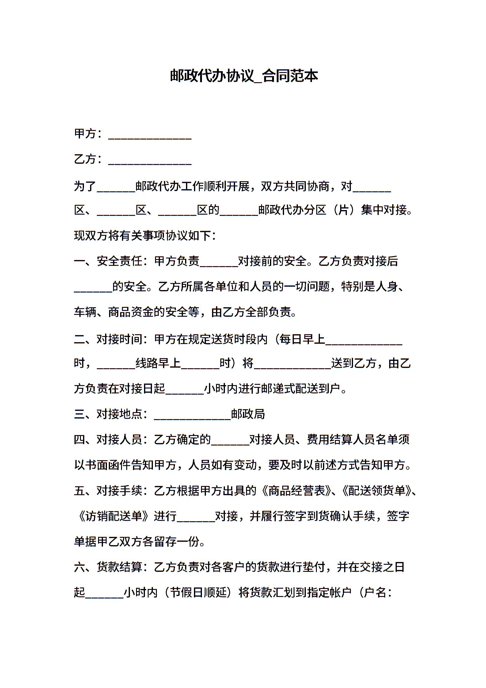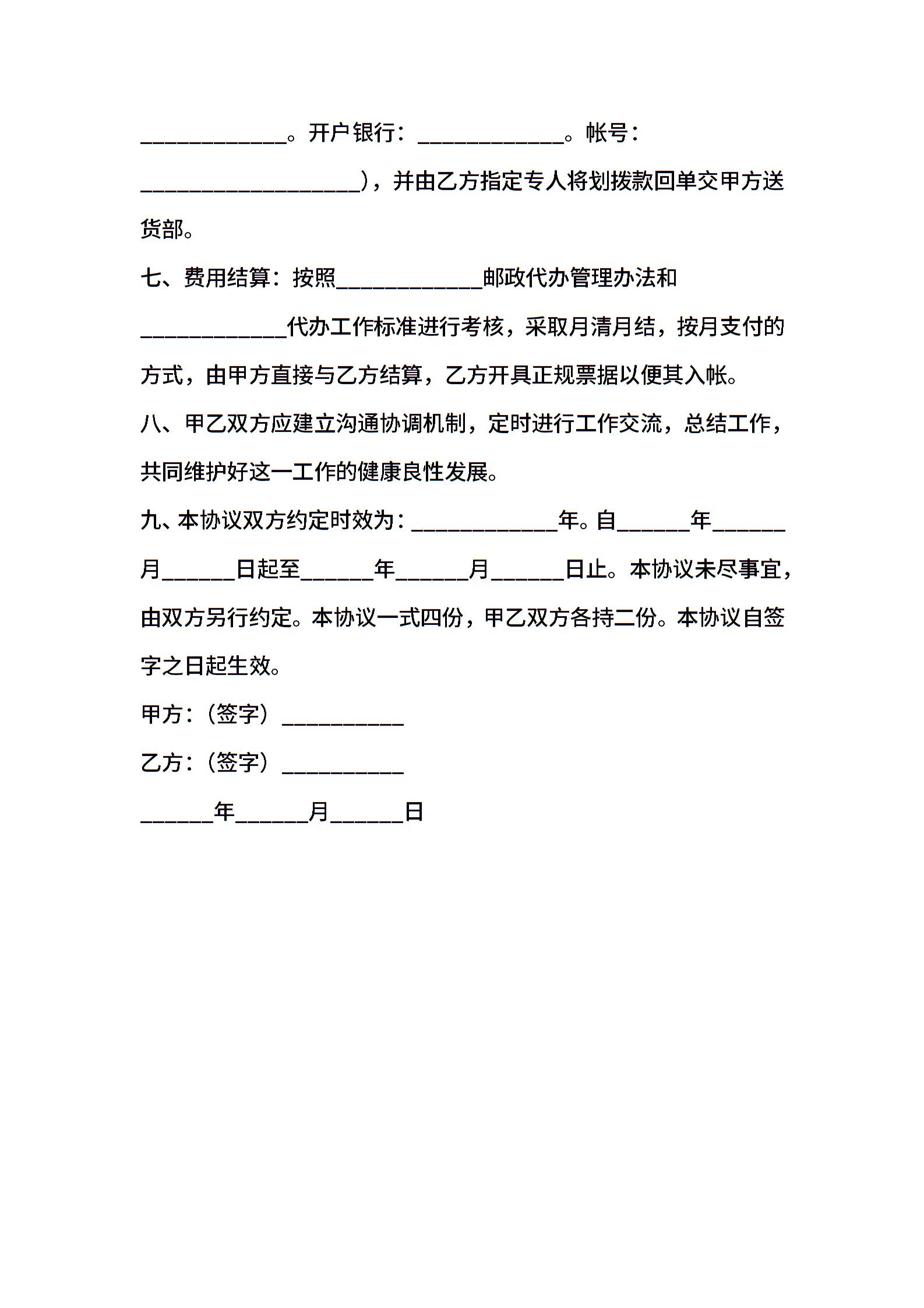 邮政代办协议_合同范本
