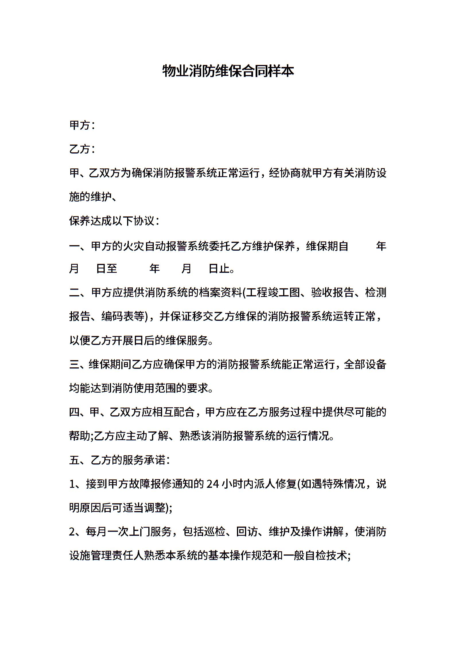 物业消防维保合同样本