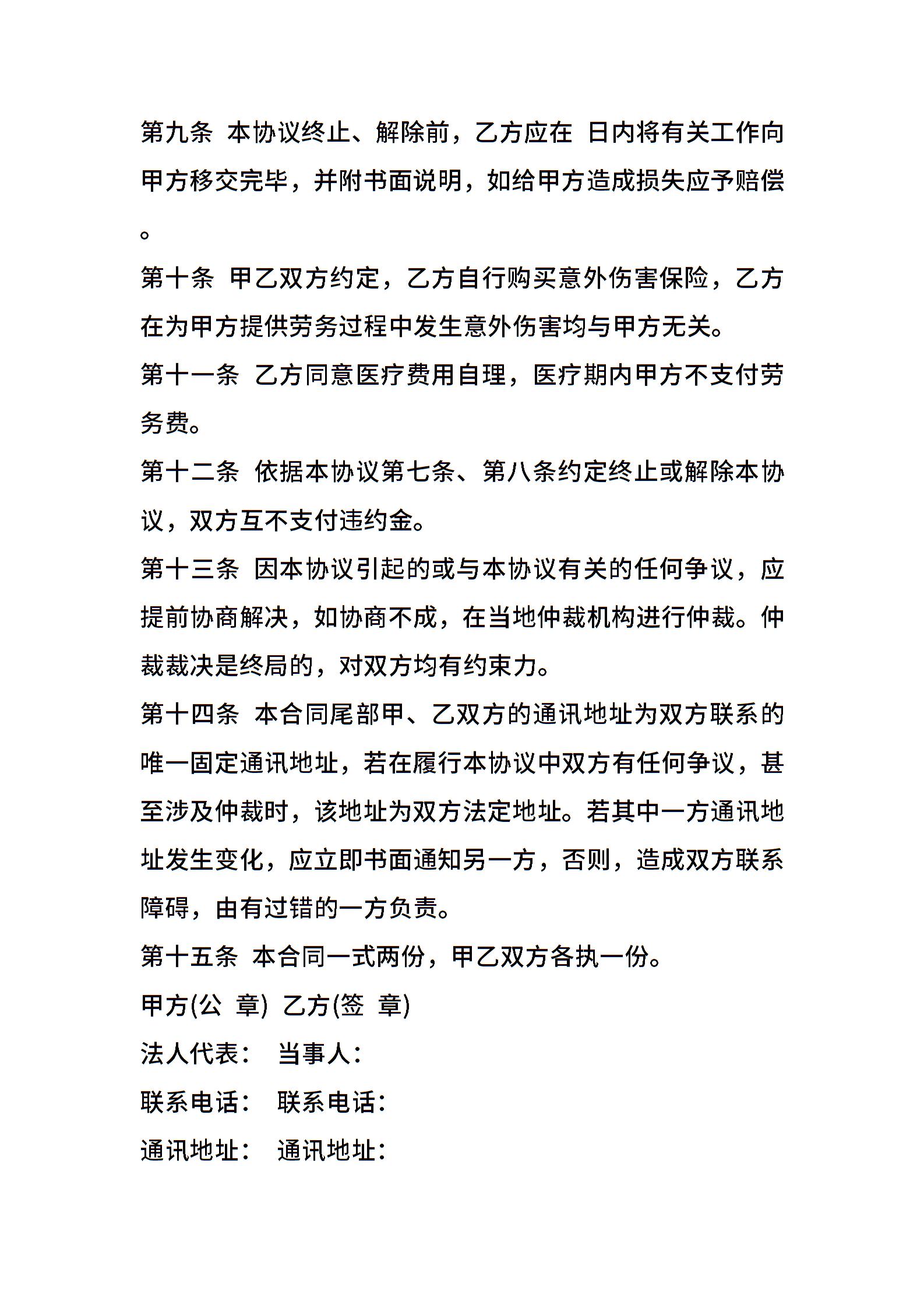 • 分类 聘用合同