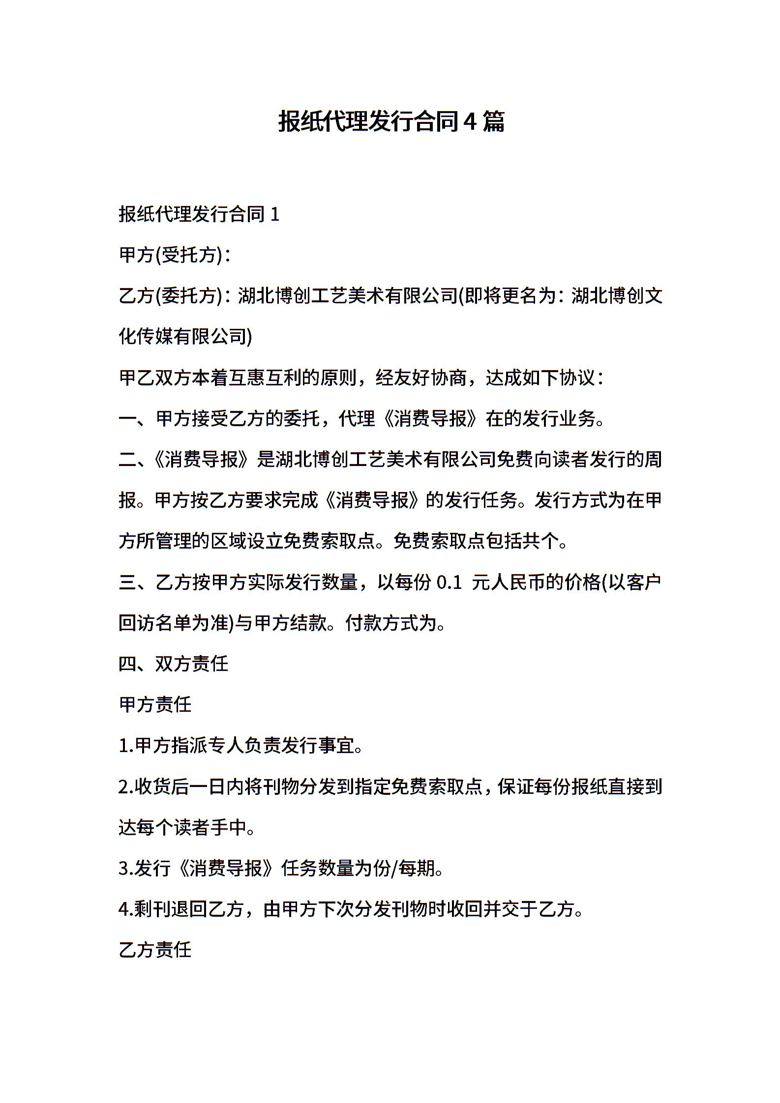 报纸代理发行合同4篇
