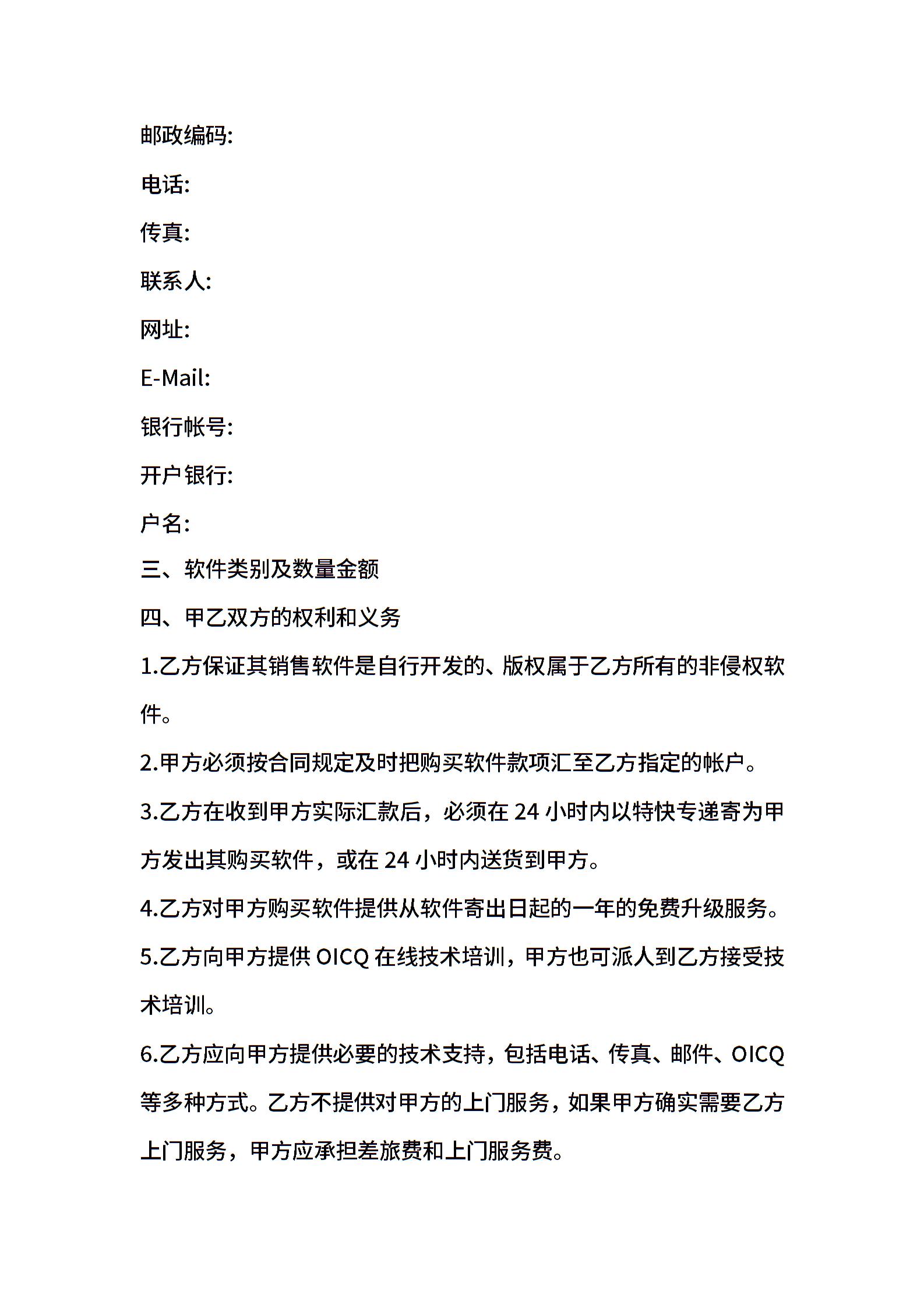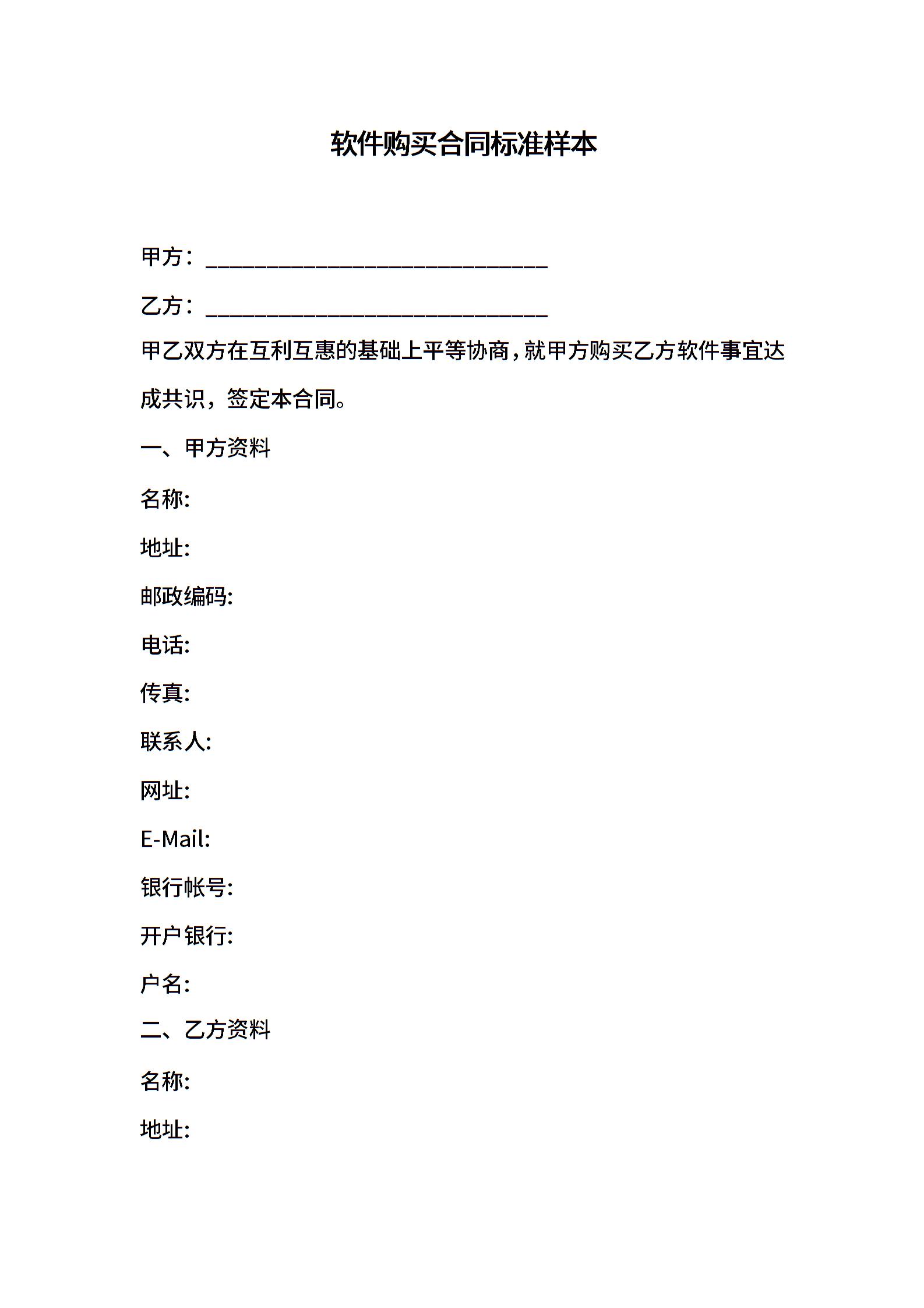 软件购买合同标准样本