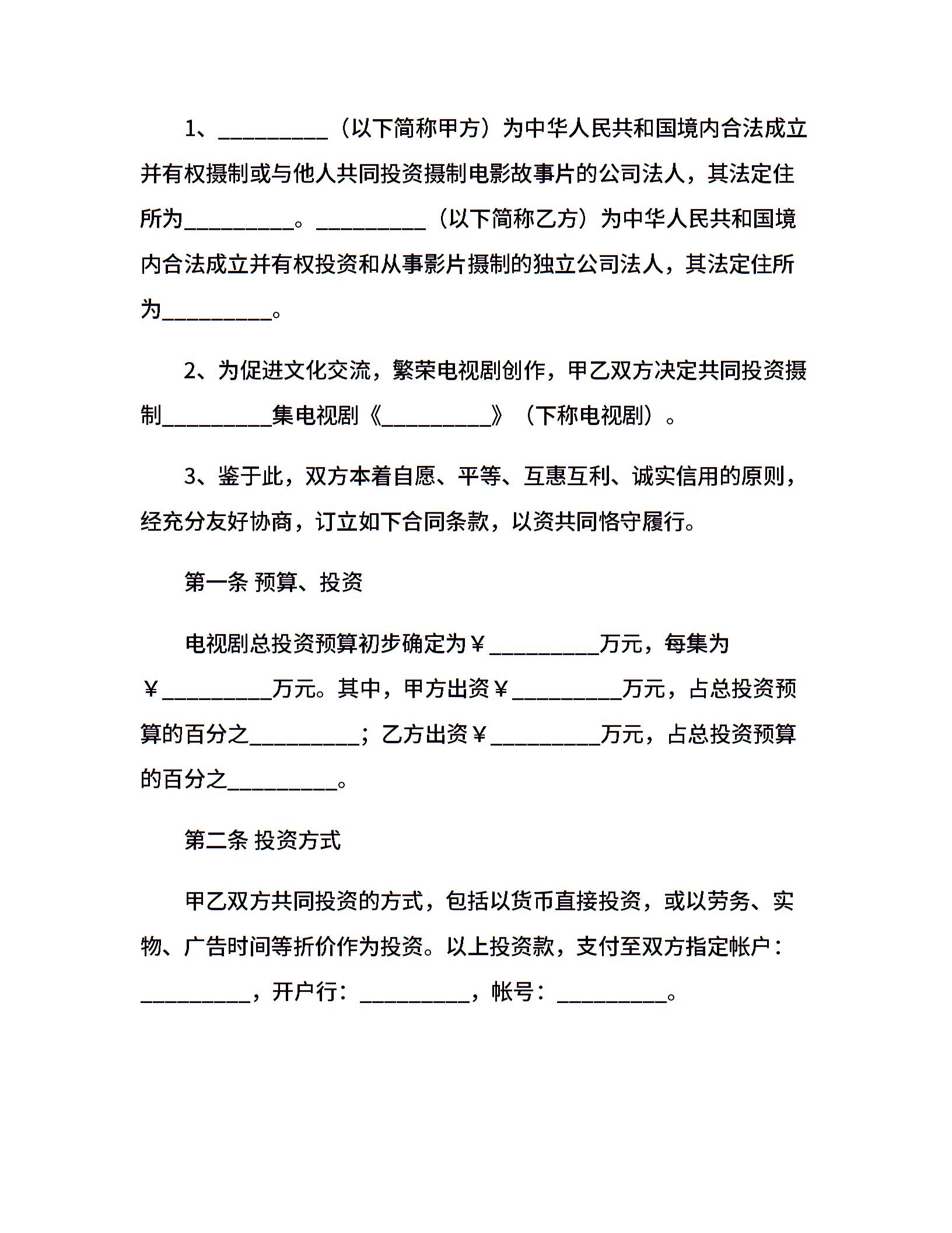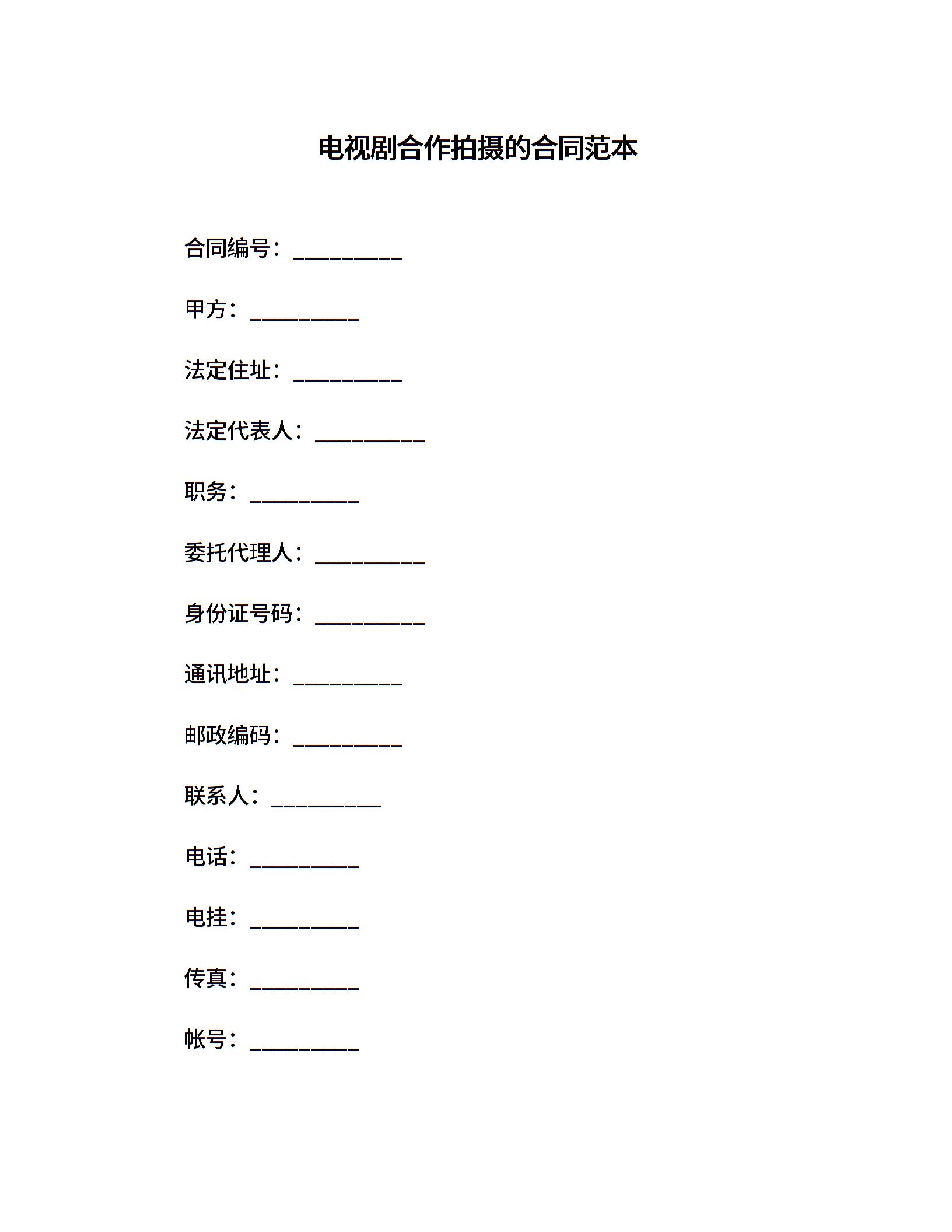 电视剧合作拍摄的合同范本