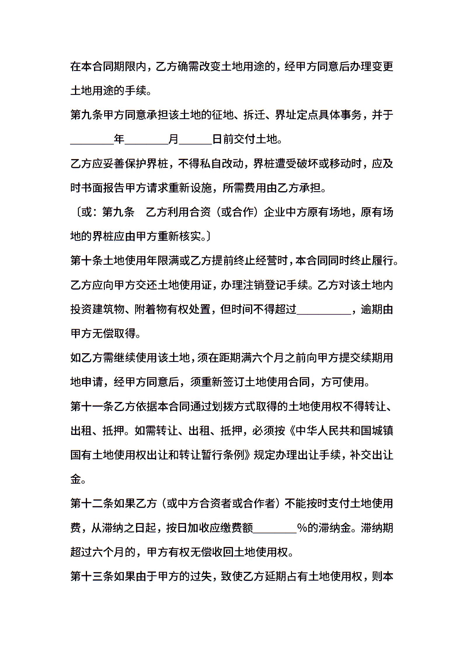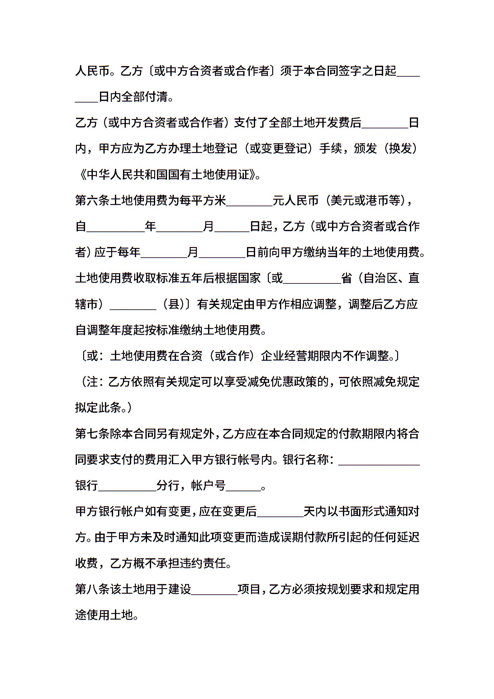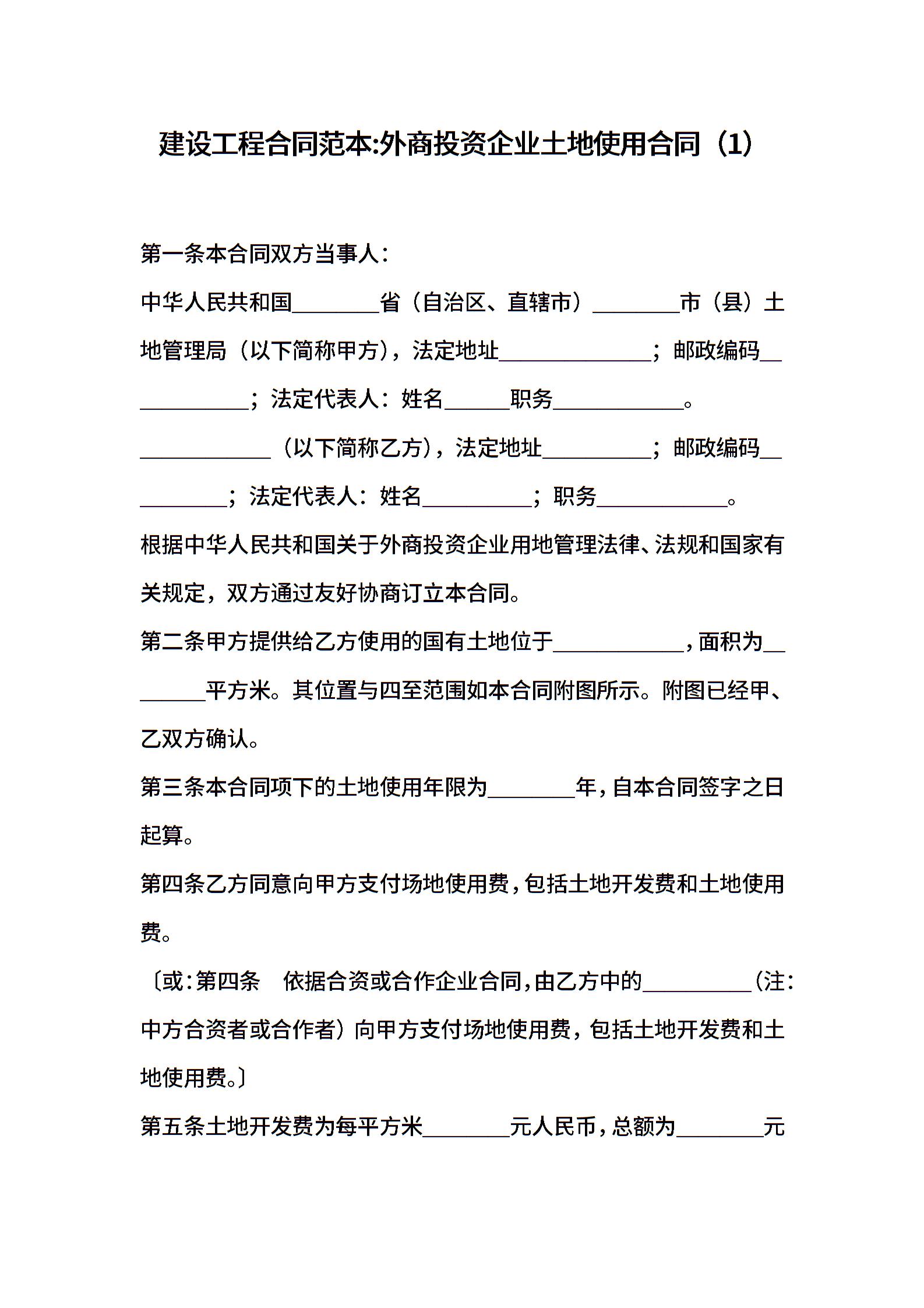 建设工程合同范本-外商投资企业土地使用合同(1)