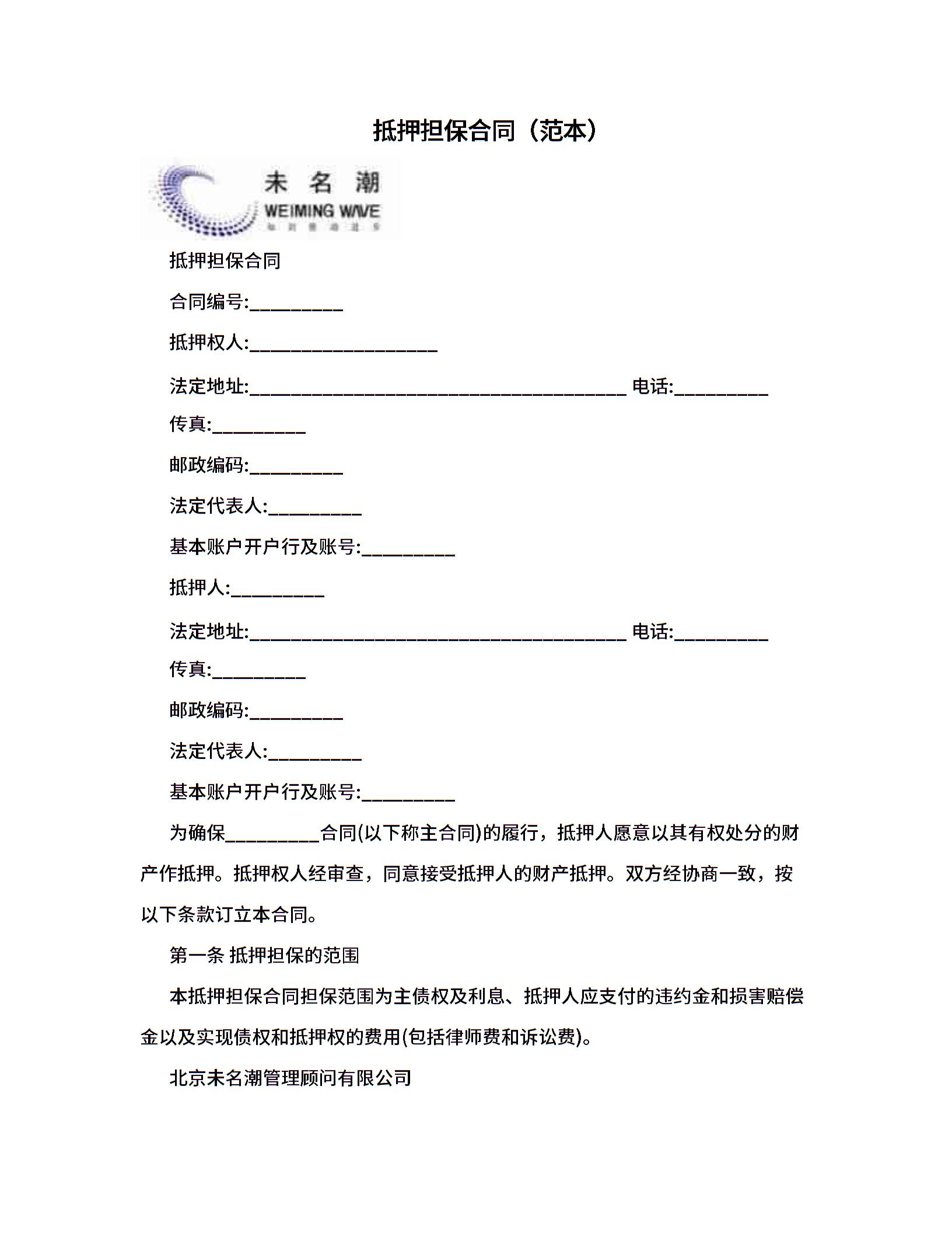 抵押担保合同(范本).doc