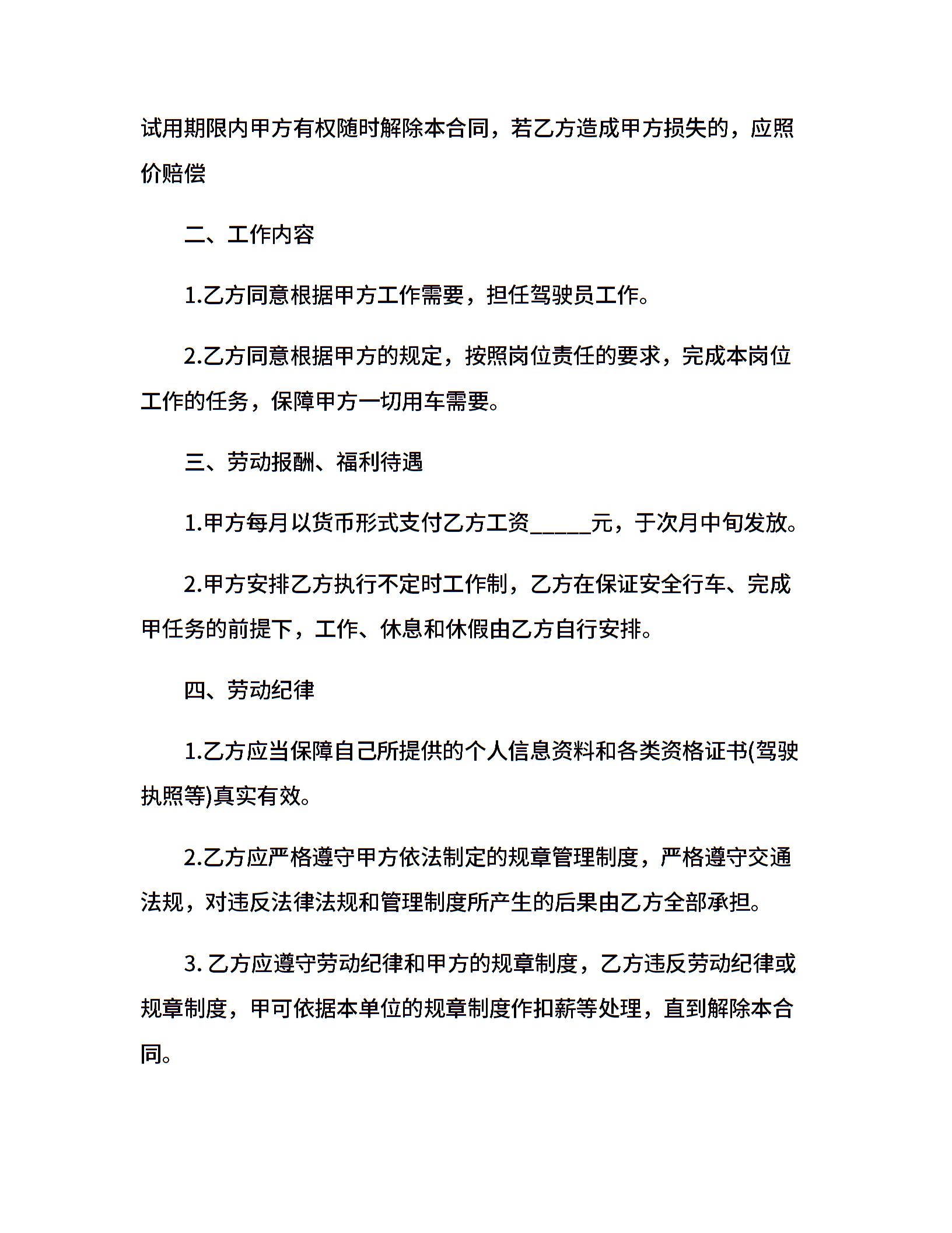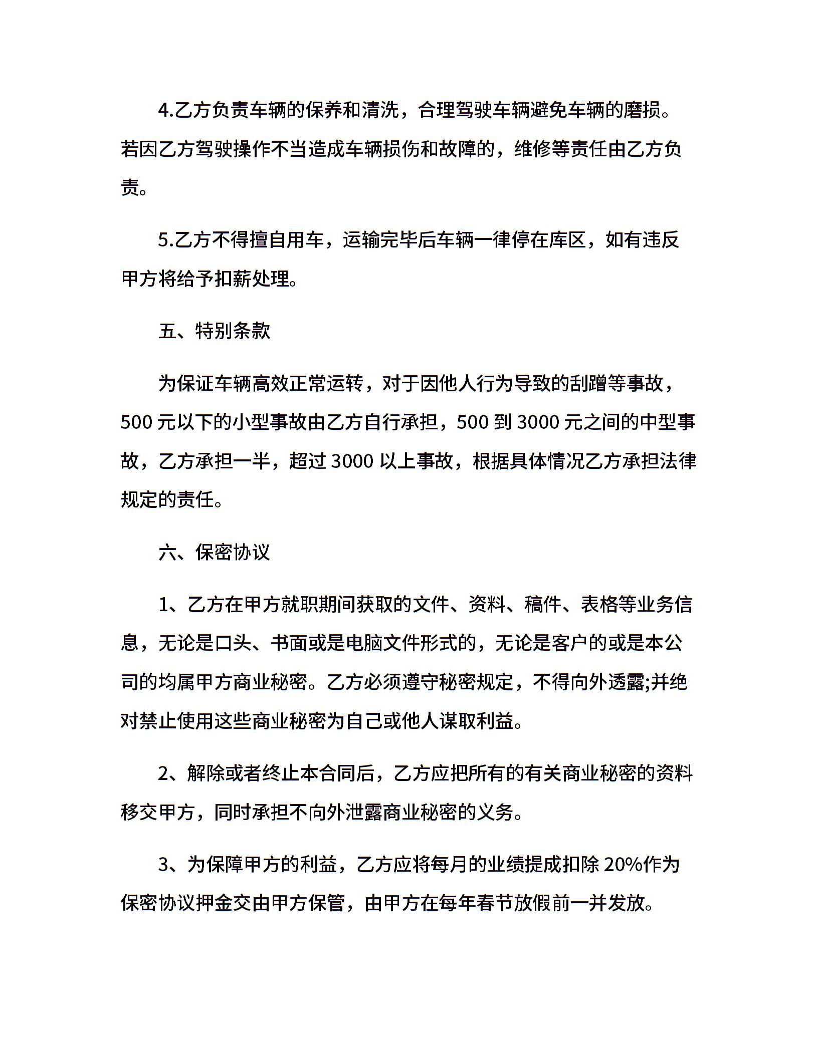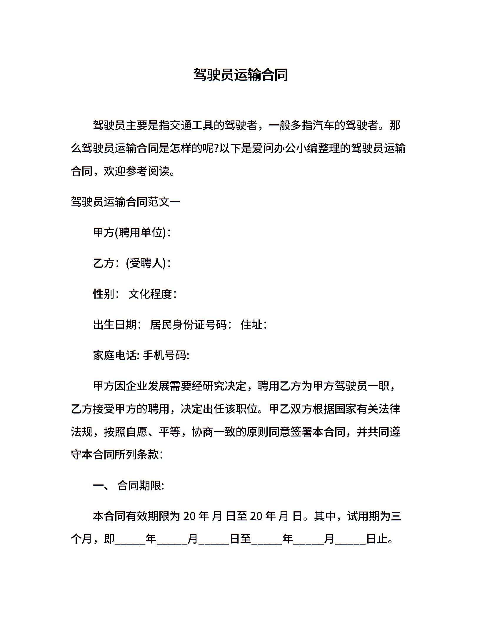 驾驶员运输合同