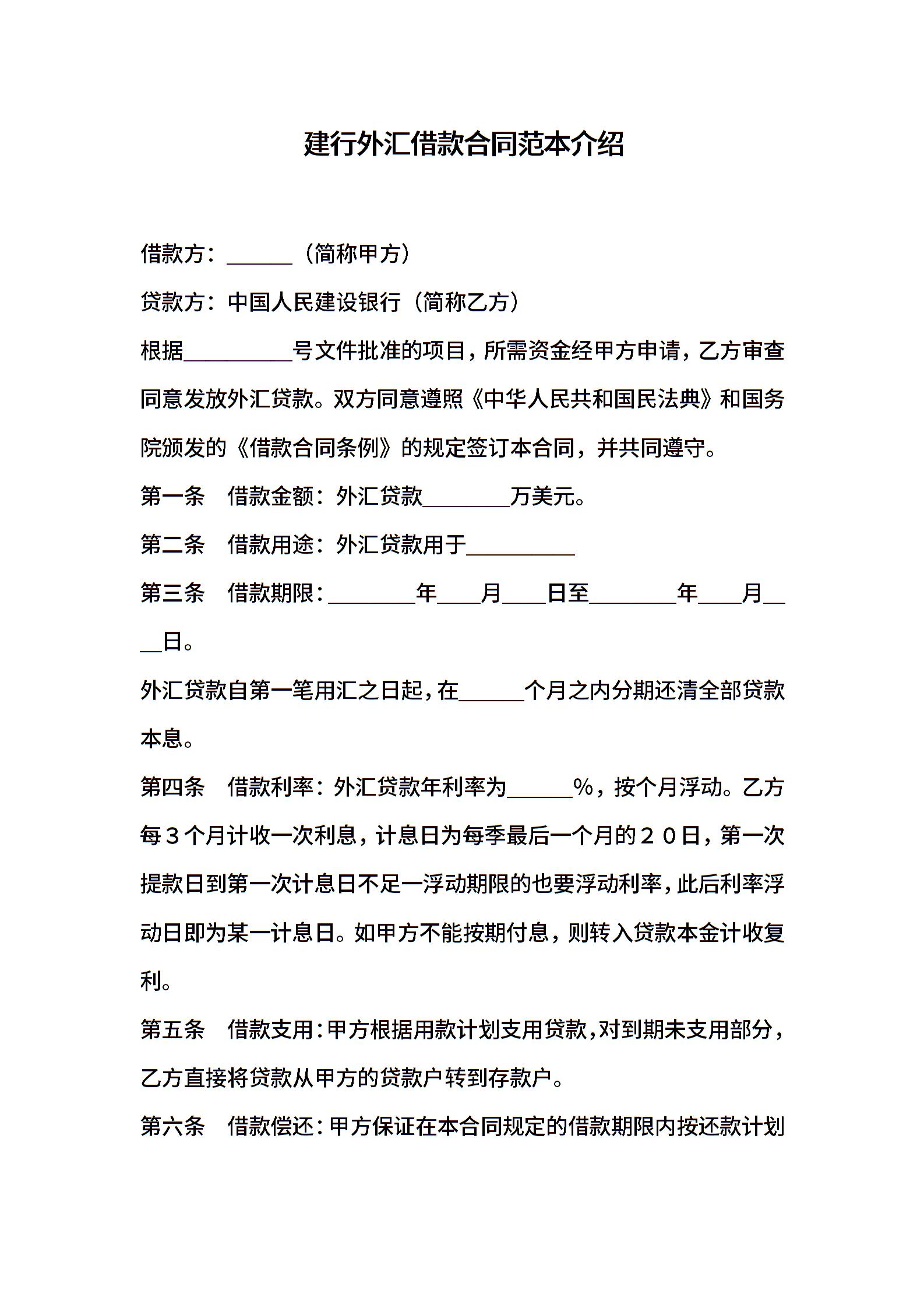 建行外汇借款合同范本介绍