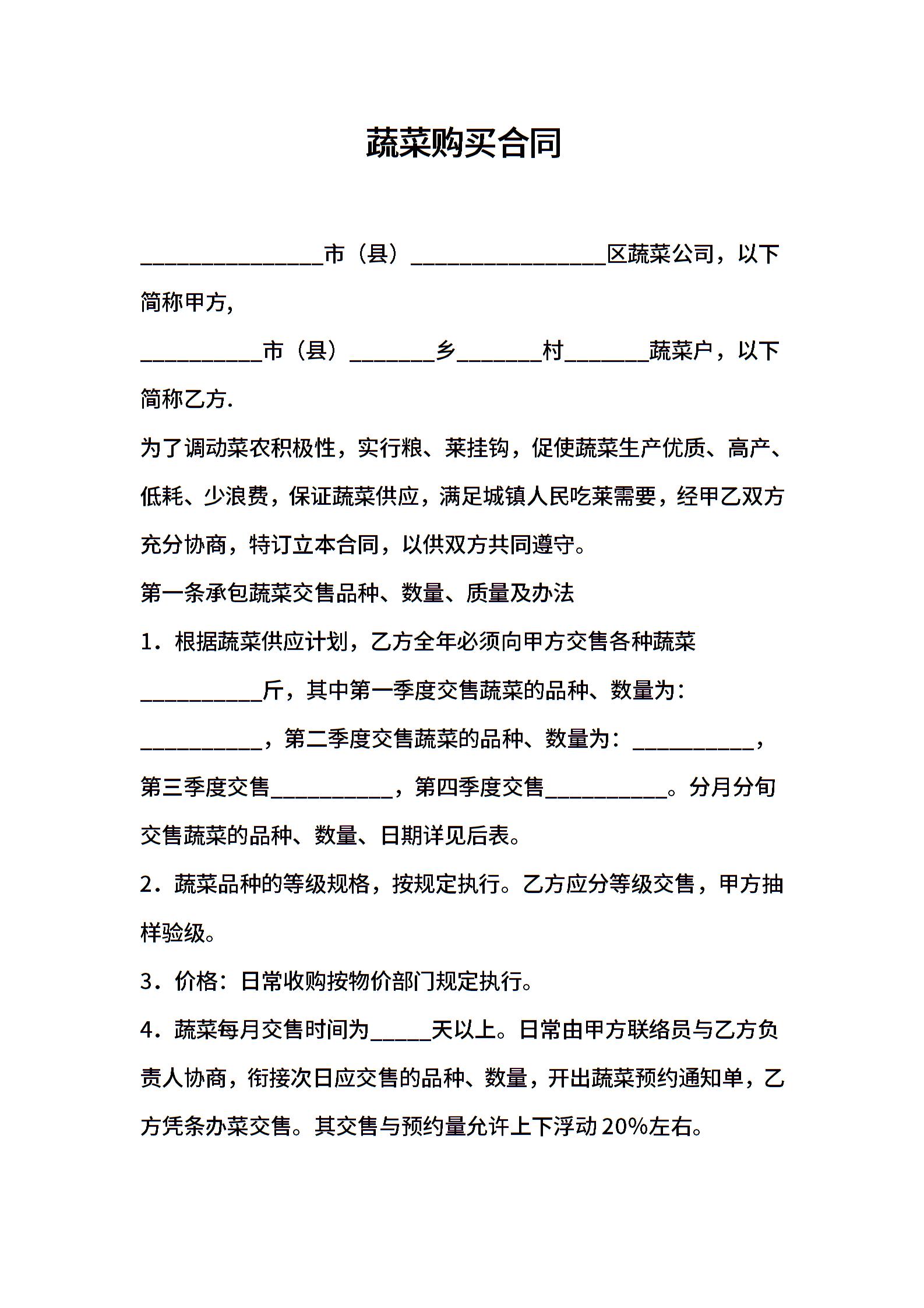 蔬菜购买合同