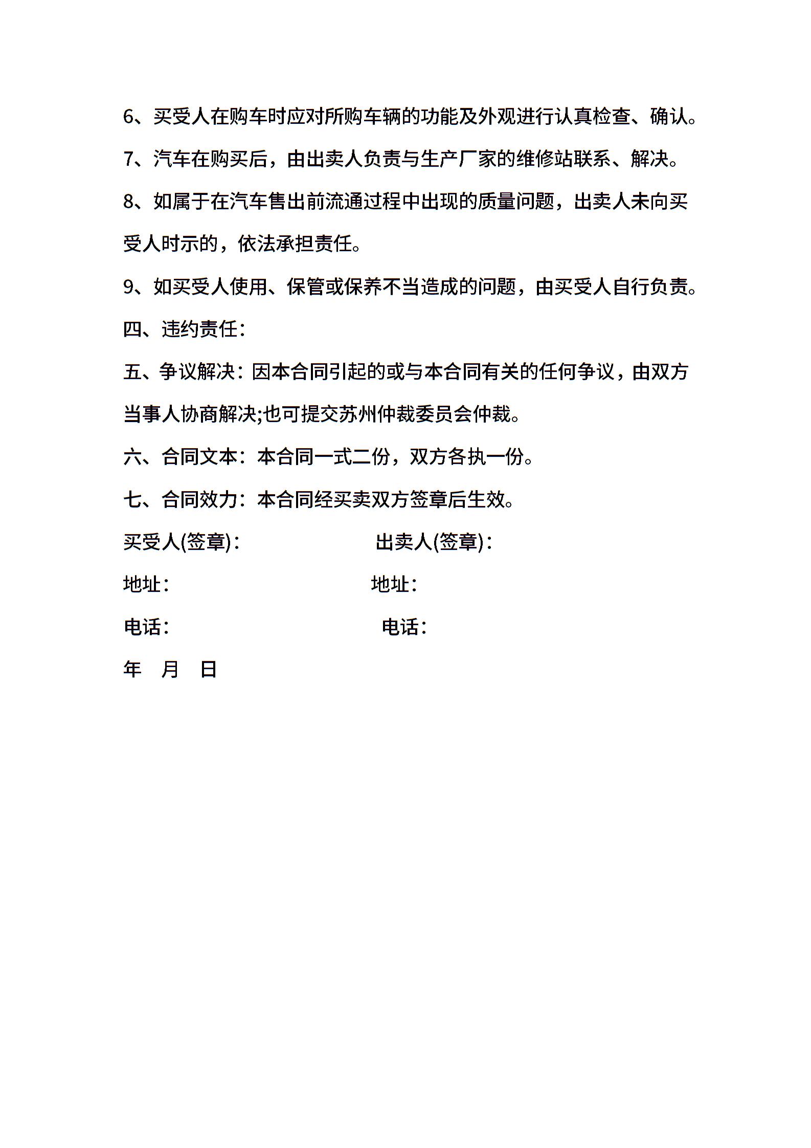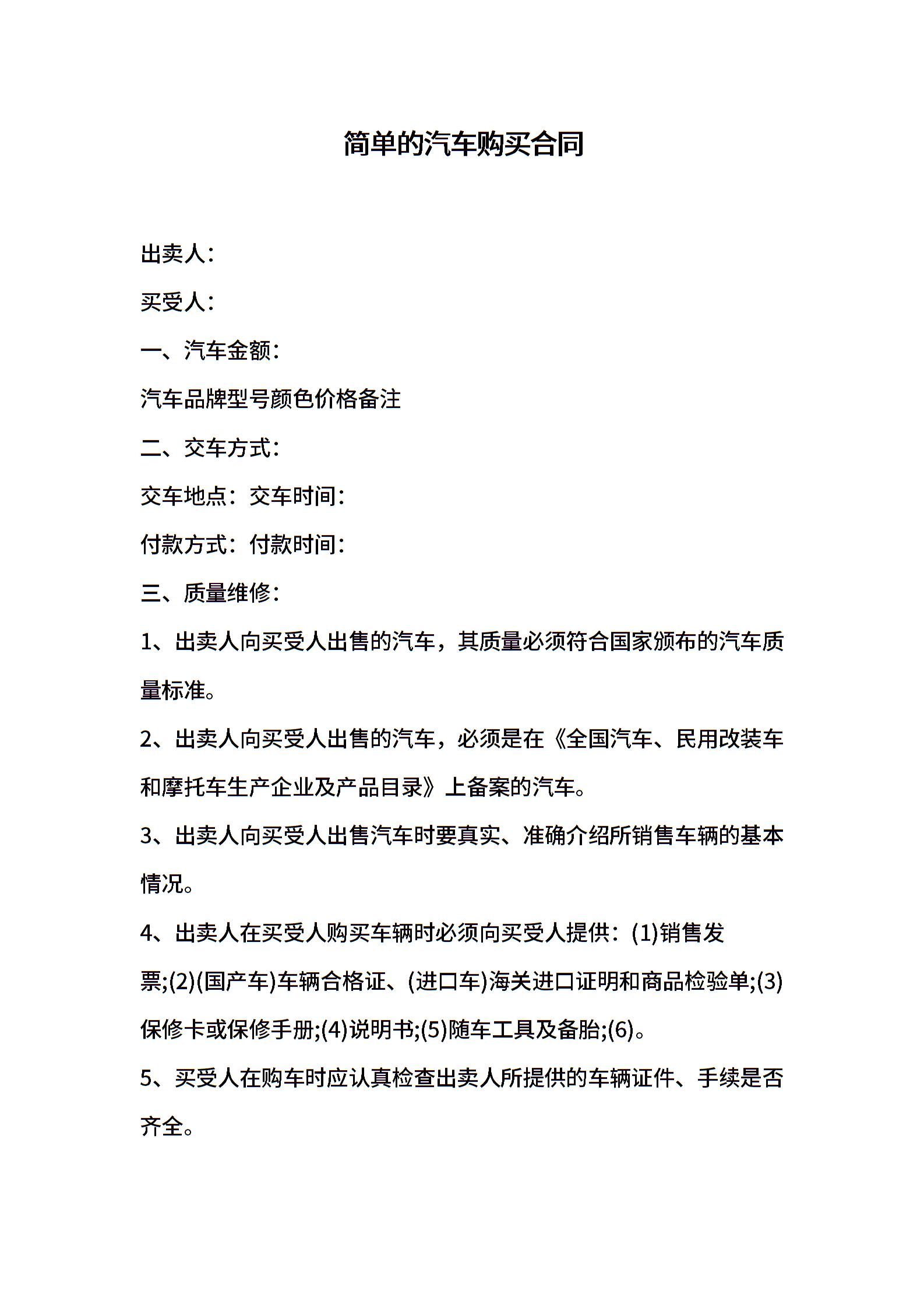 简单的汽车购买合同