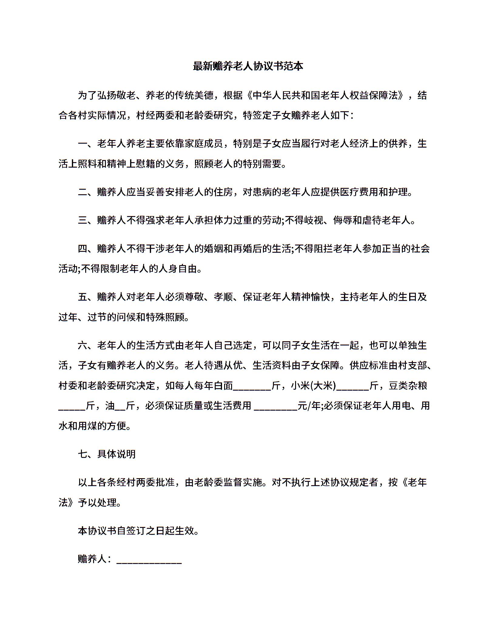 最新赡养老人协议书范本.docx