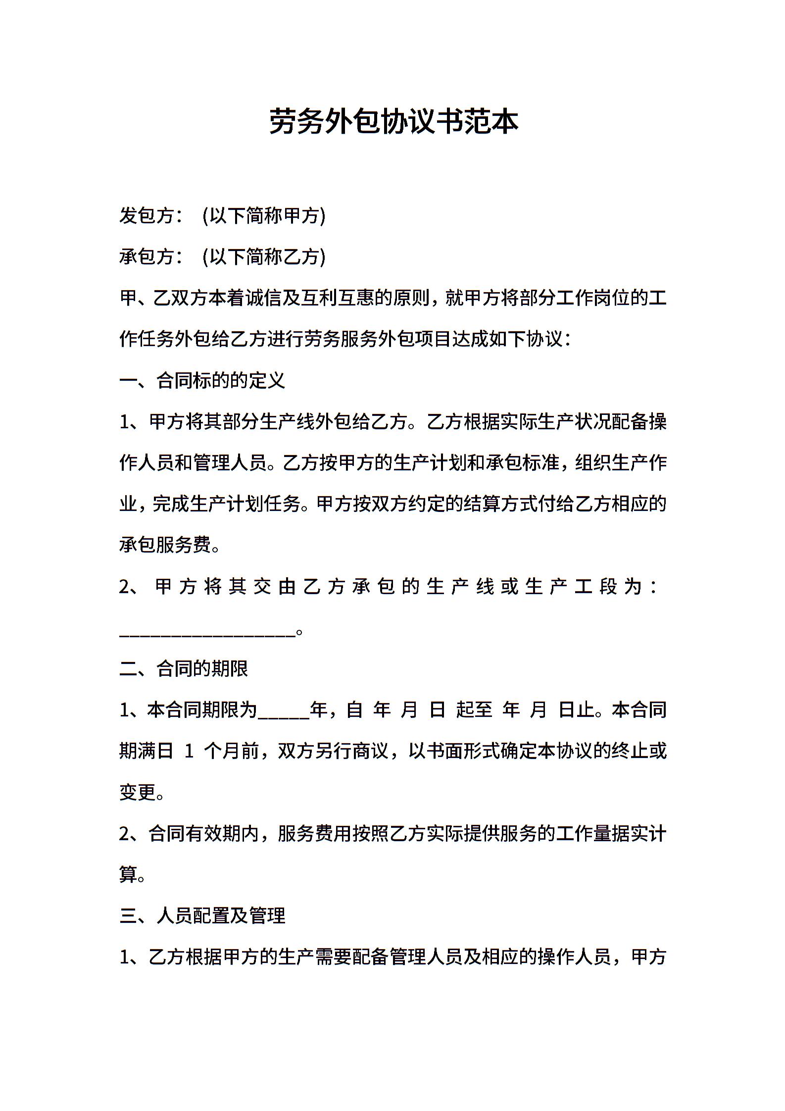 劳务外包协议书范本