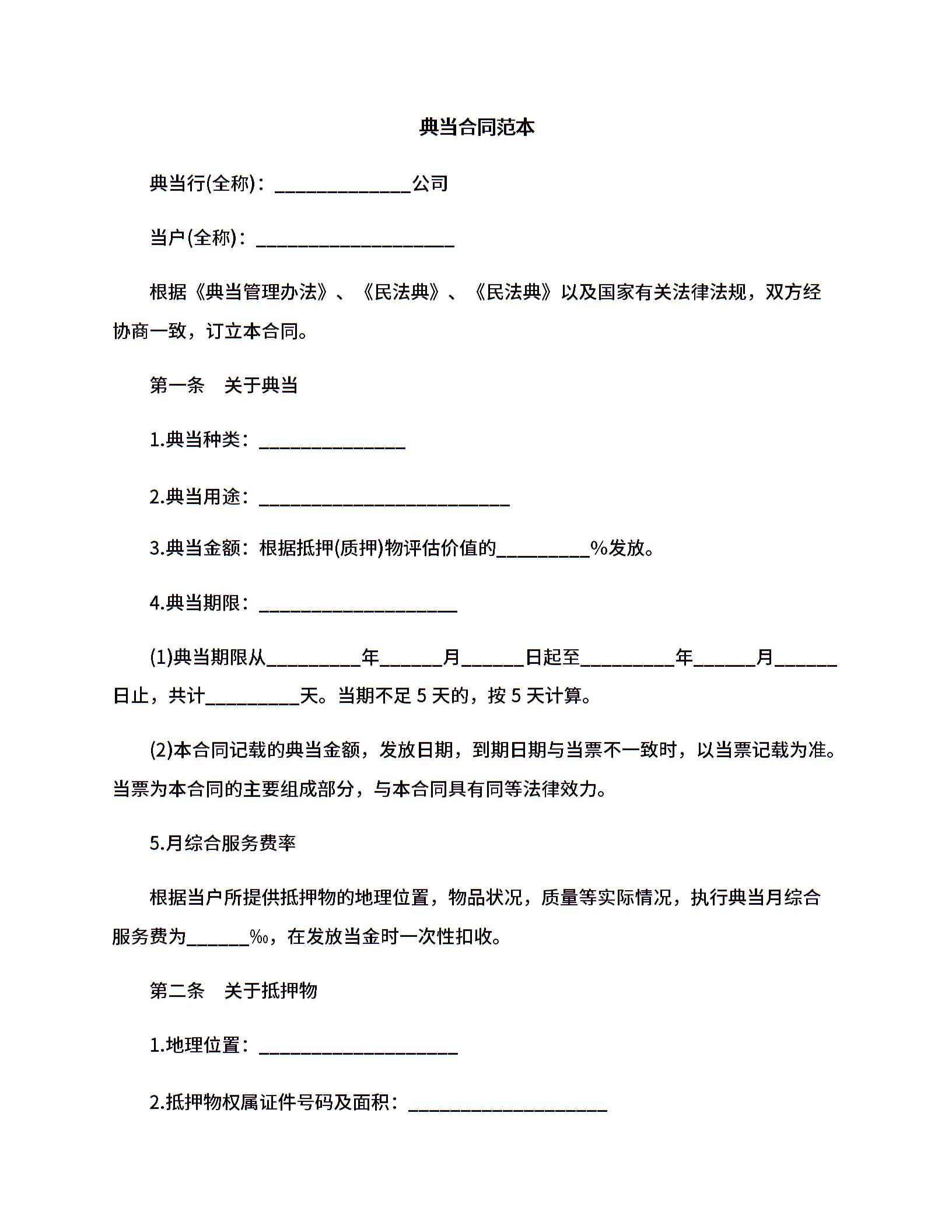 当前位置:量子办公 > 合同模板 > 典当合同 >