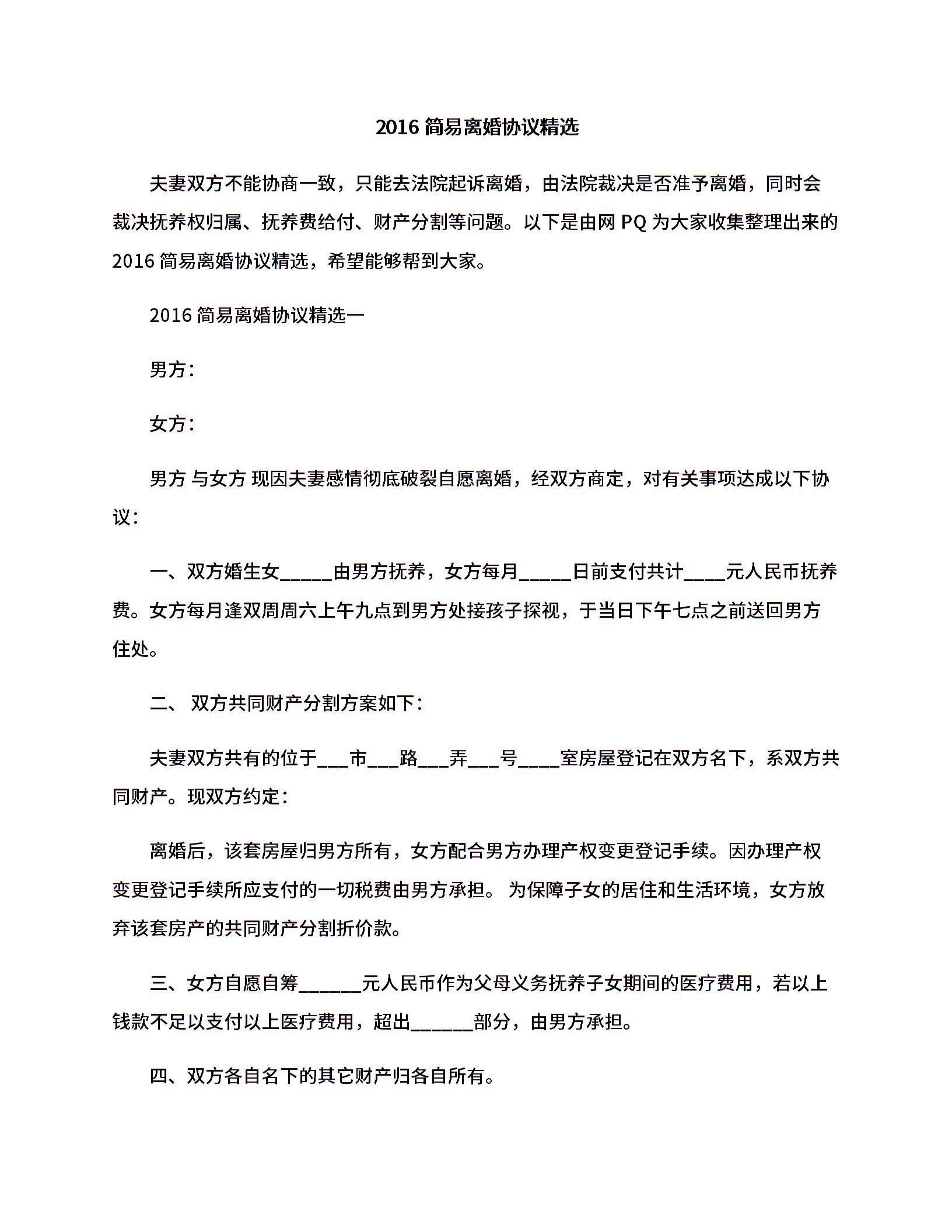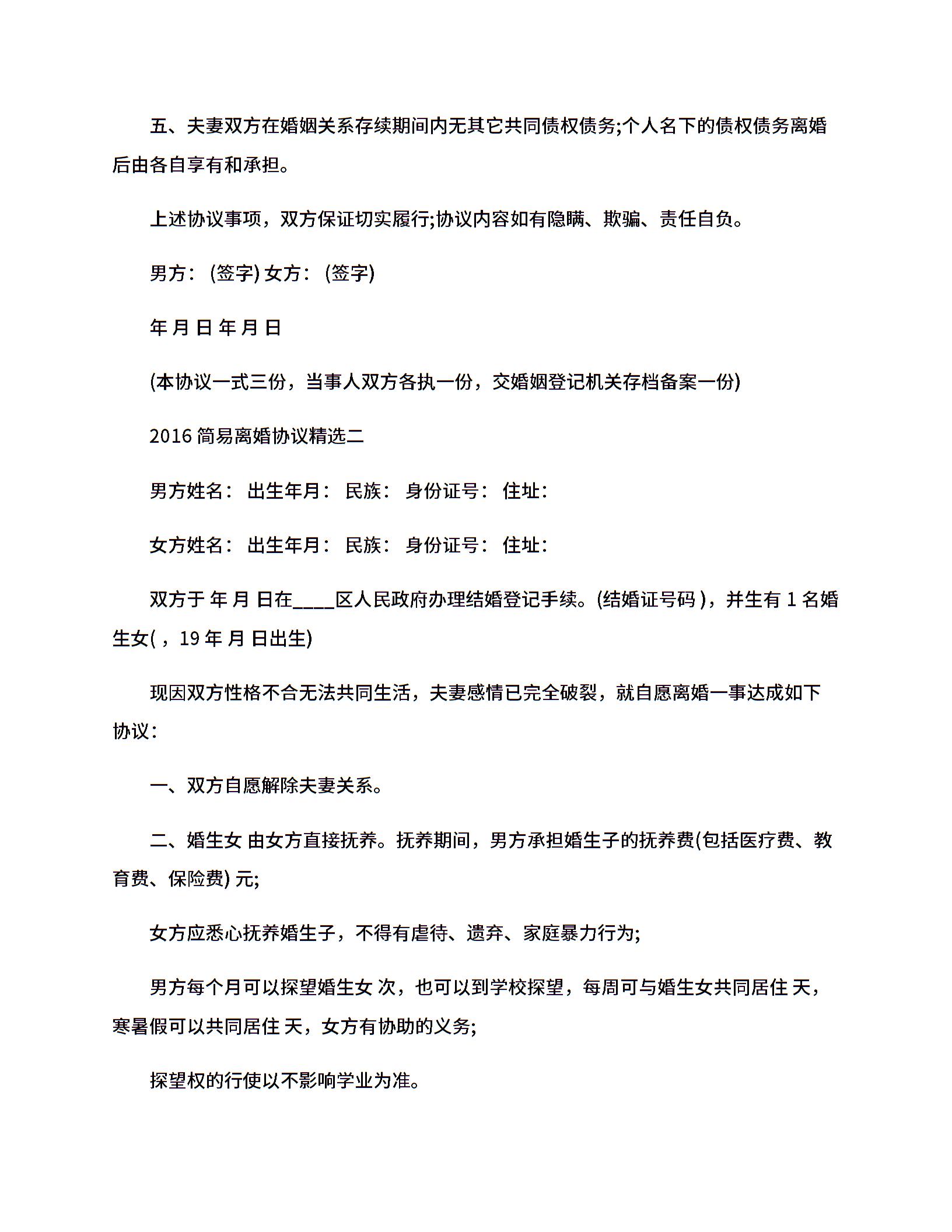 2016简易离婚协议精选.docx