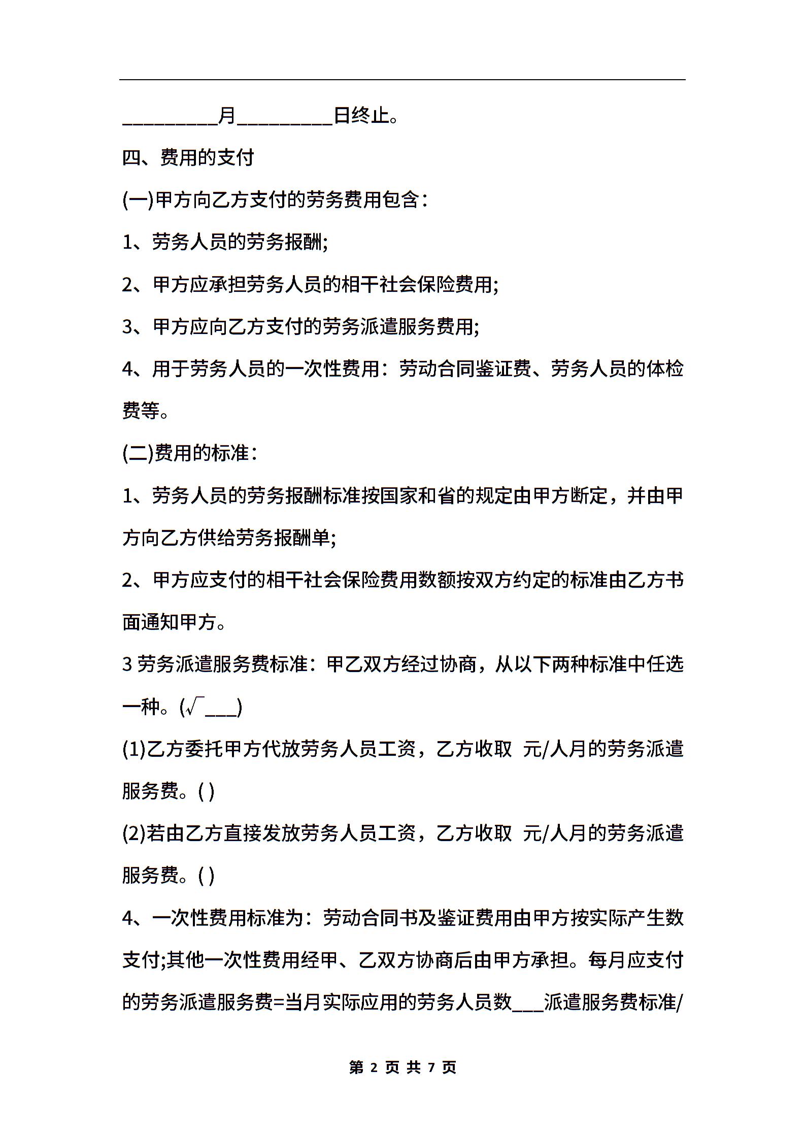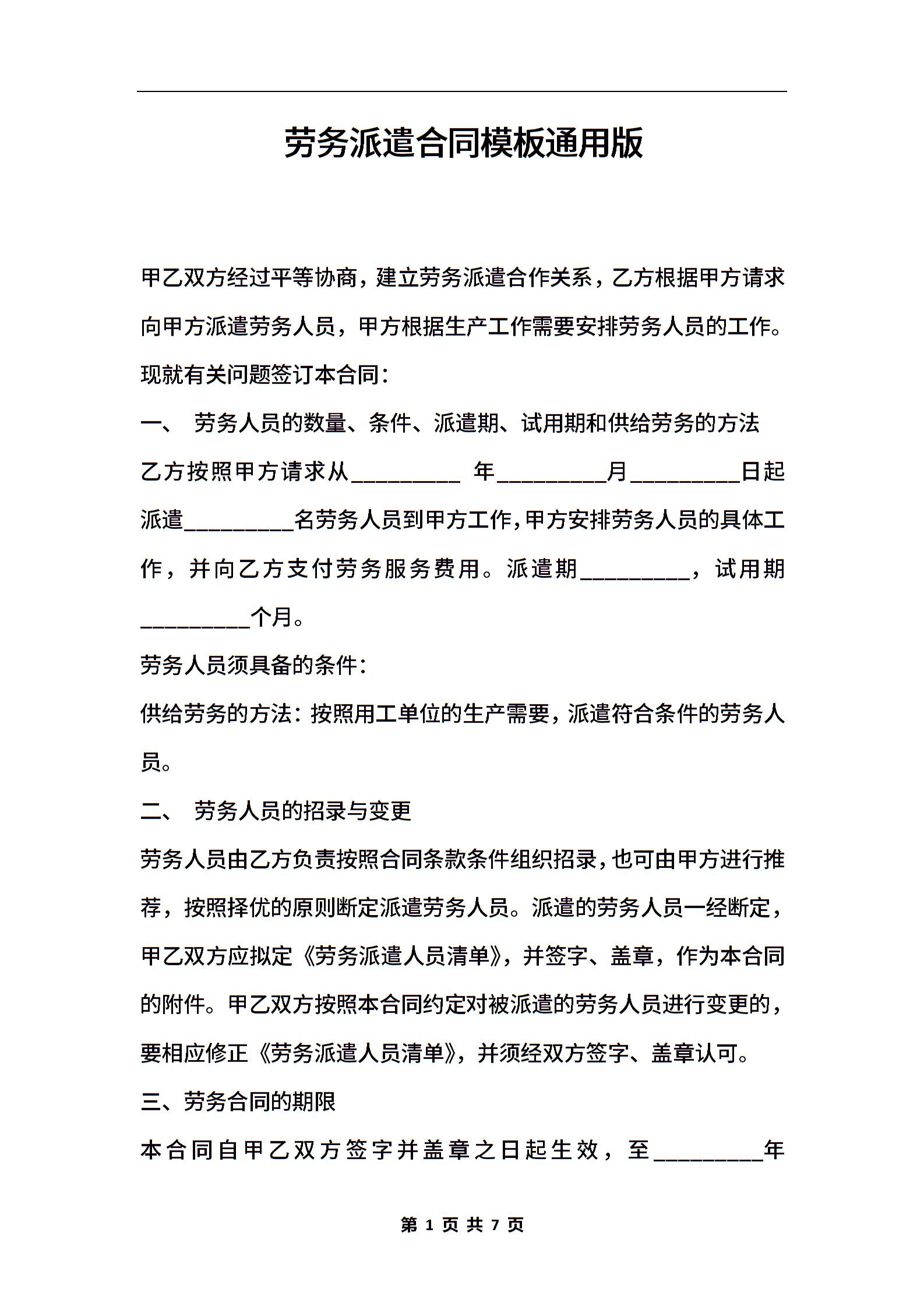 劳务派遣合同模板通用版