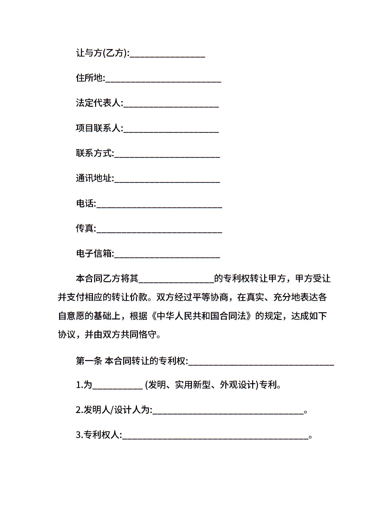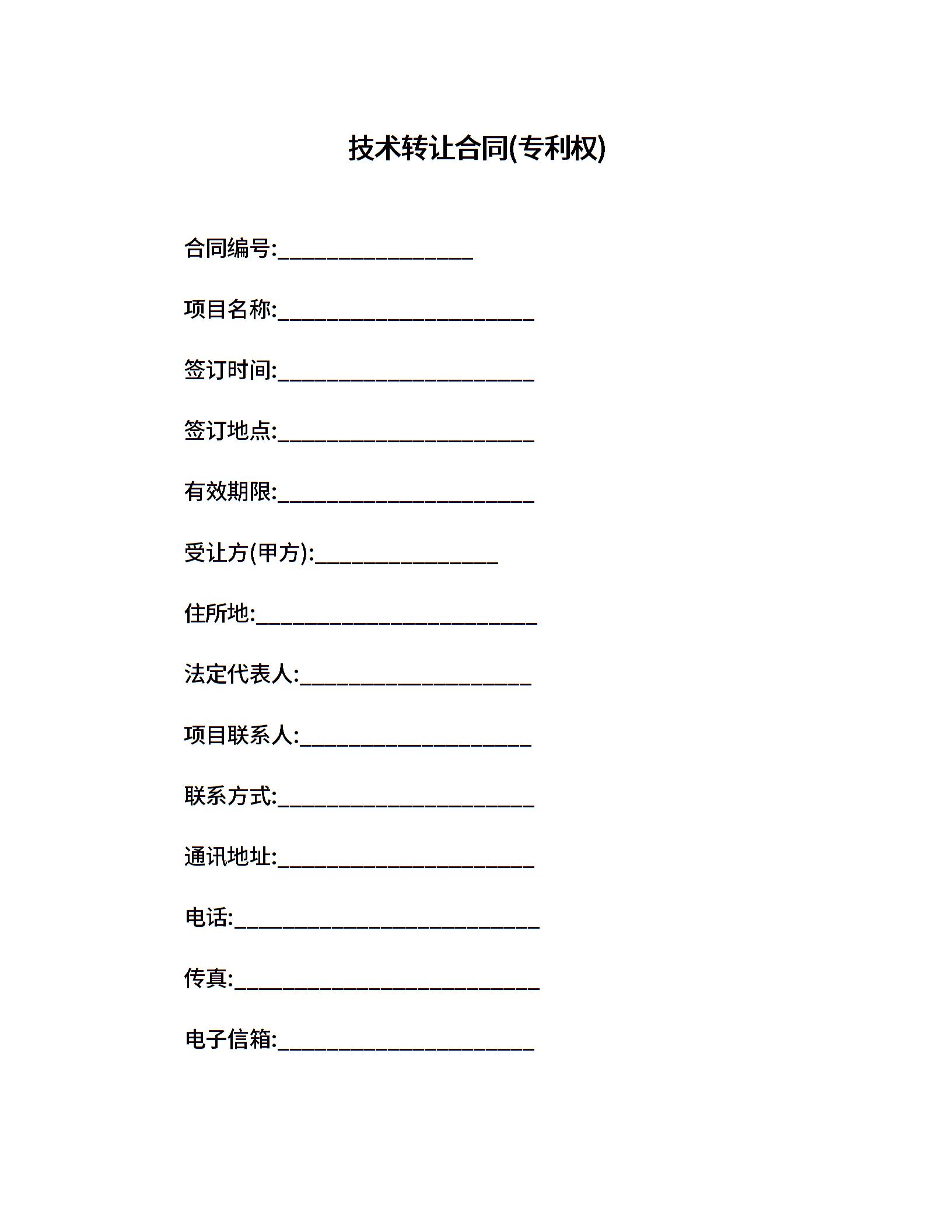 技术转让合同(专利权)