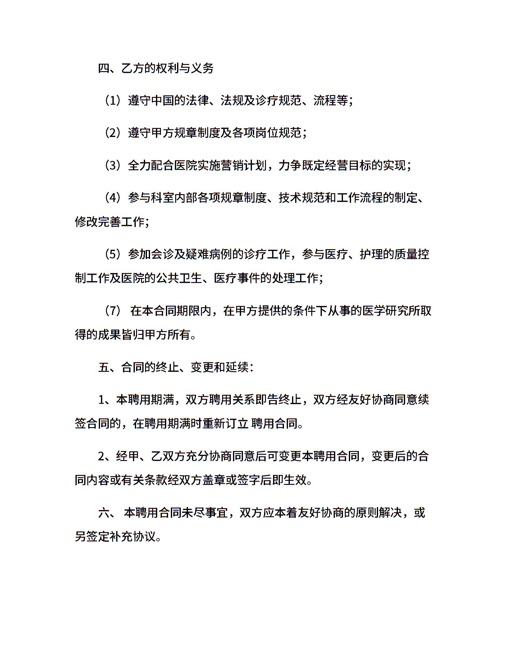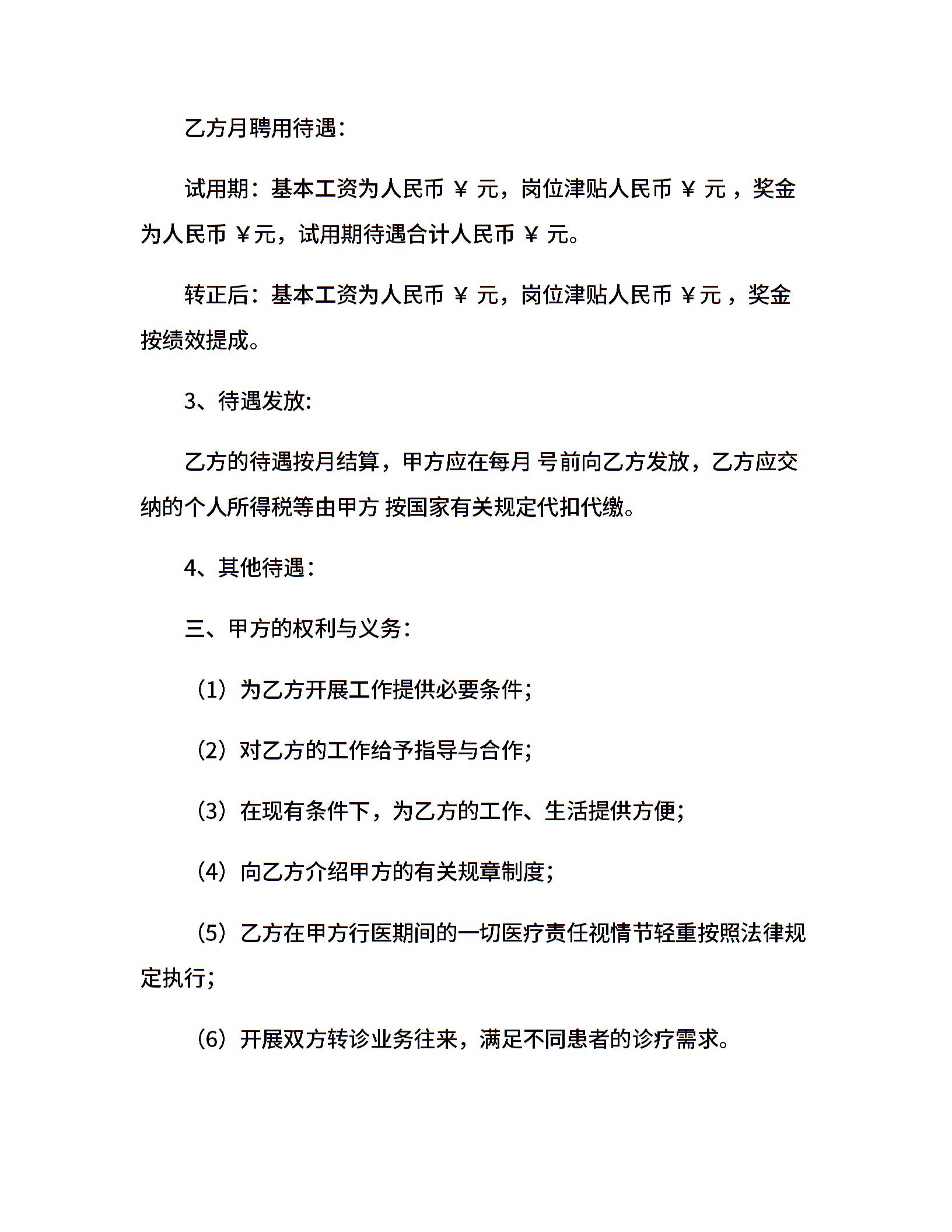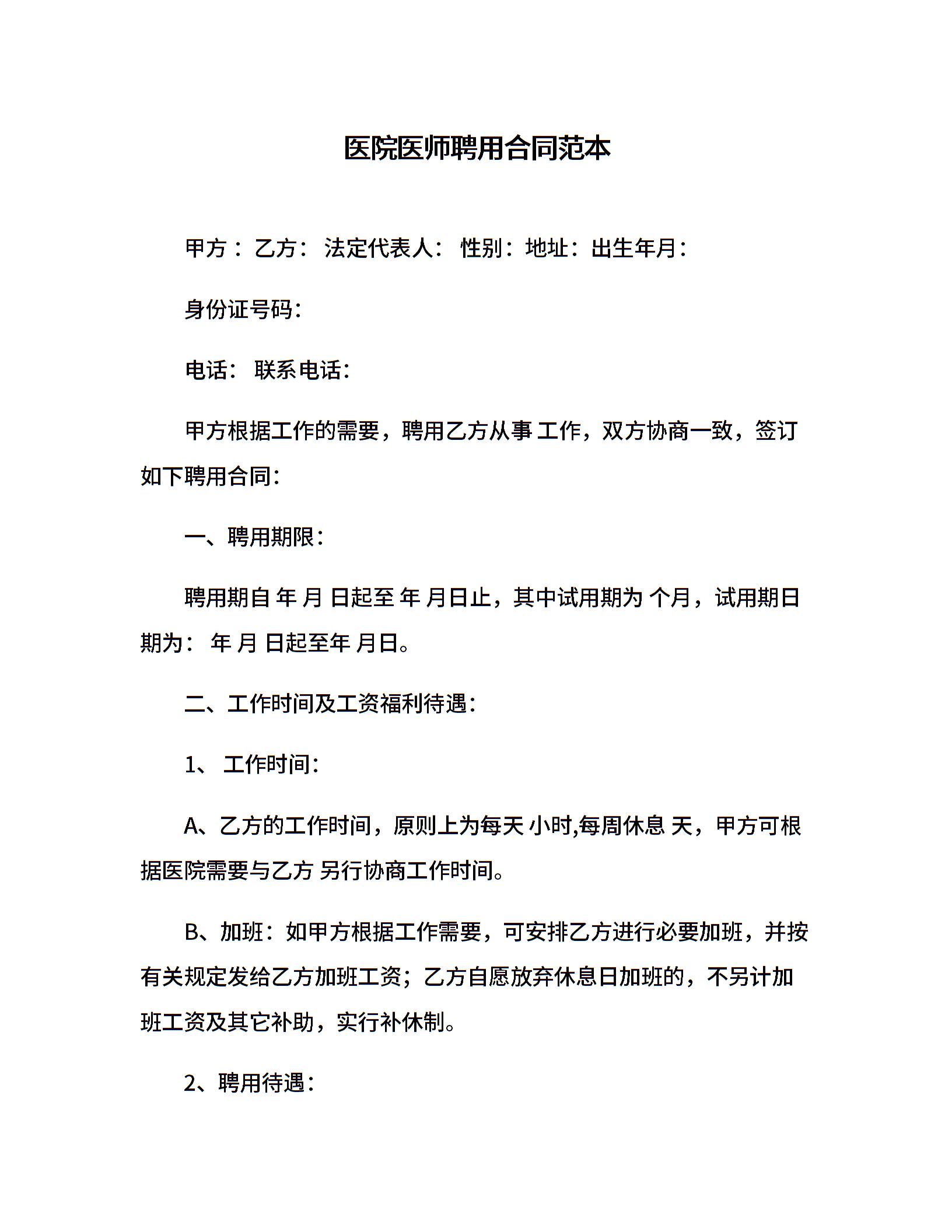医院医师聘用合同范本