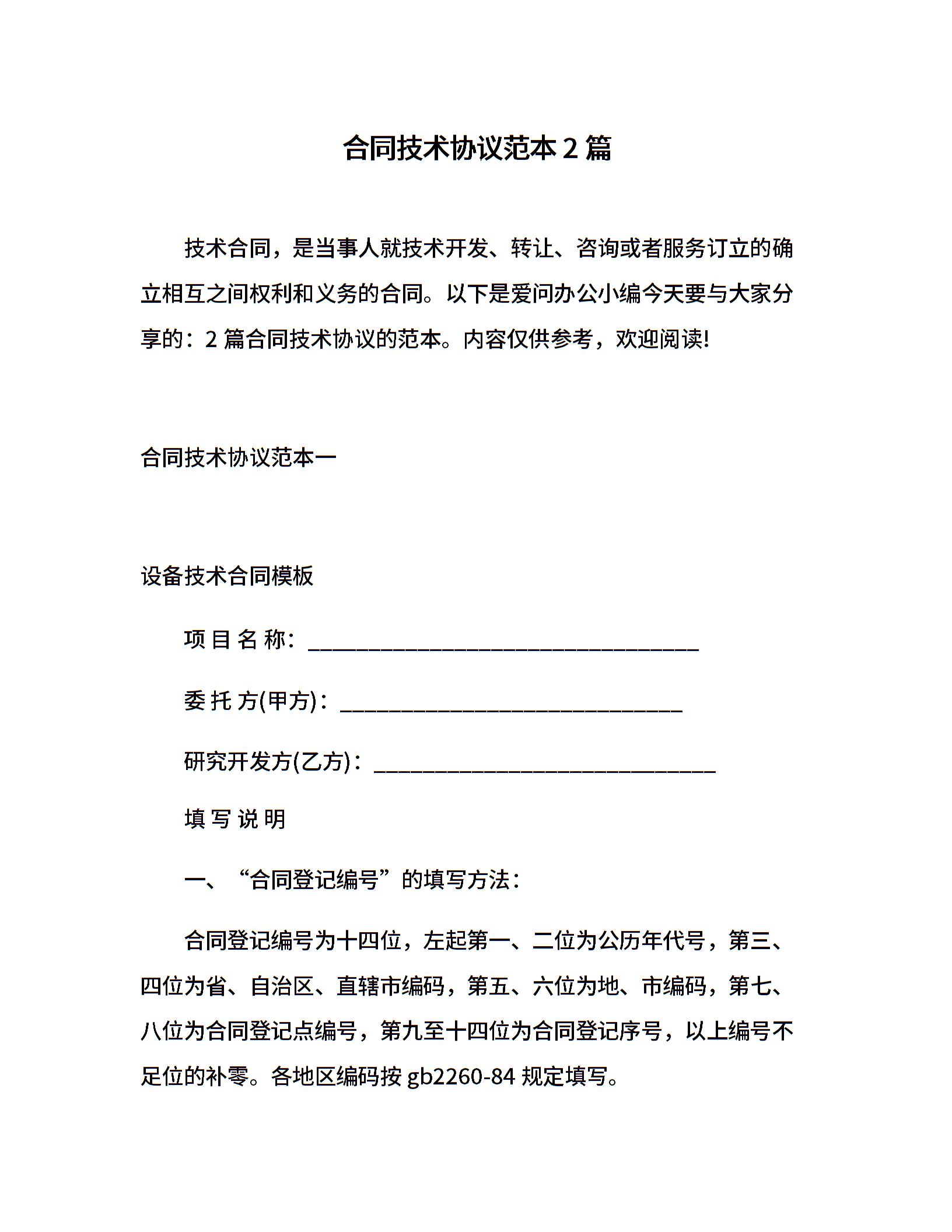 合同技术协议范本2篇