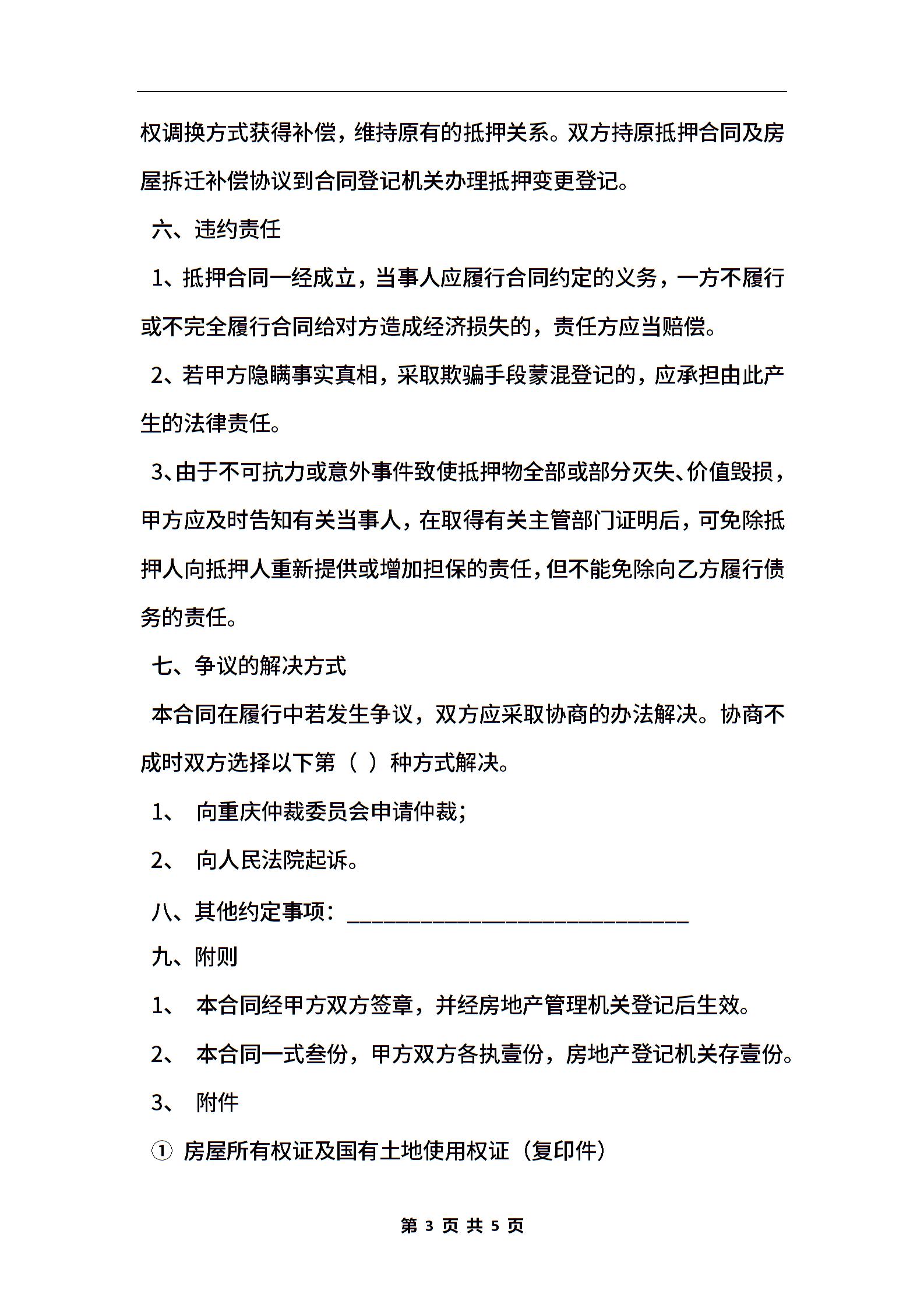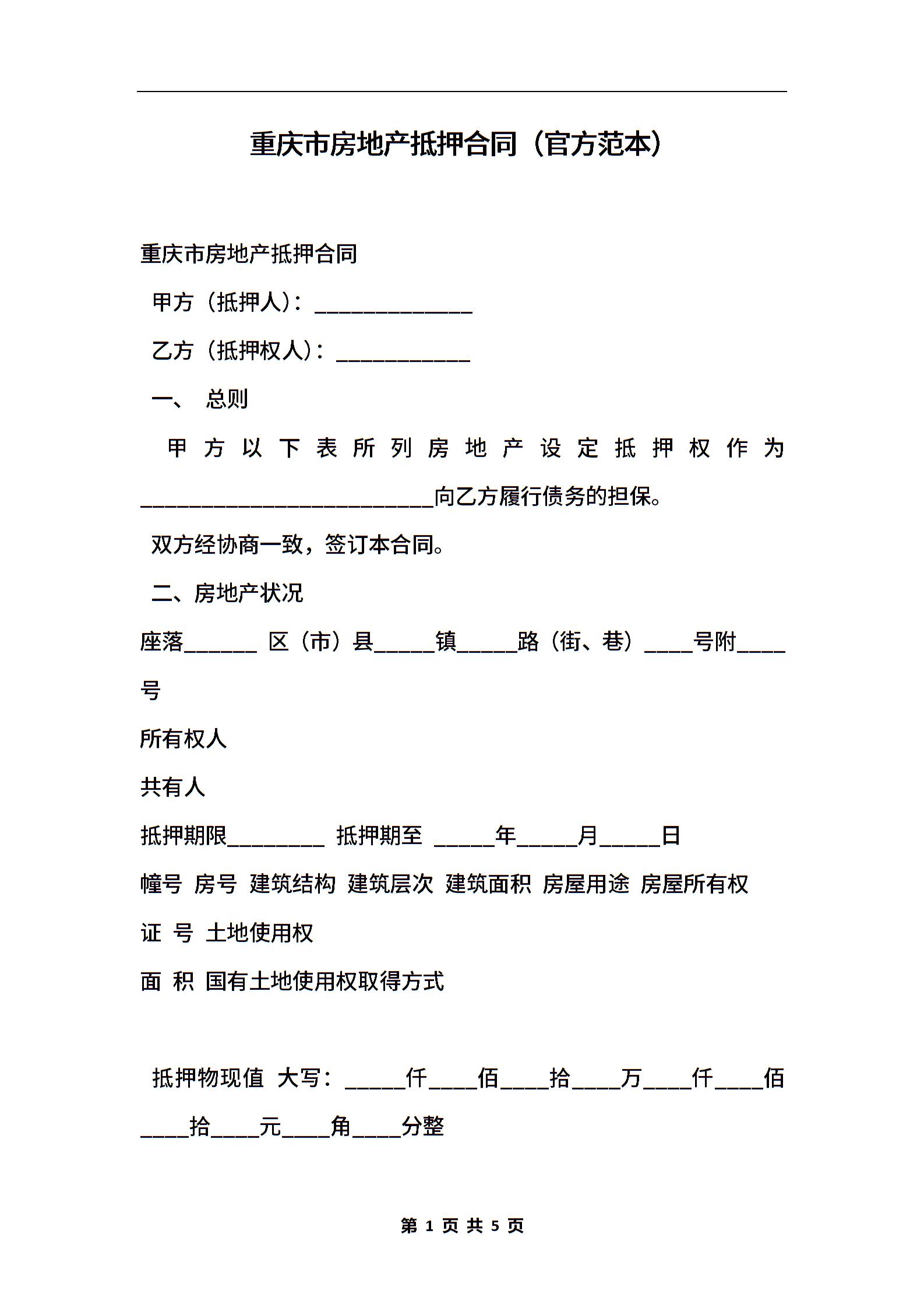重庆市房地产抵押合同(官方范本)