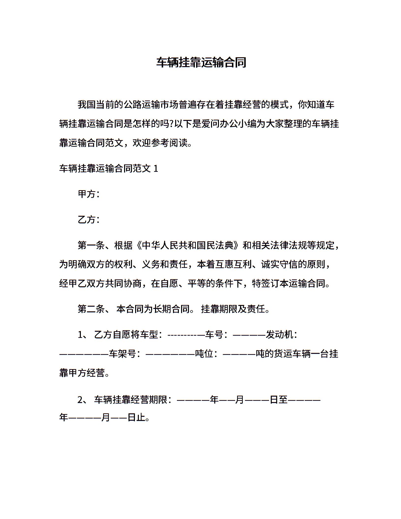 车辆挂靠运输合同