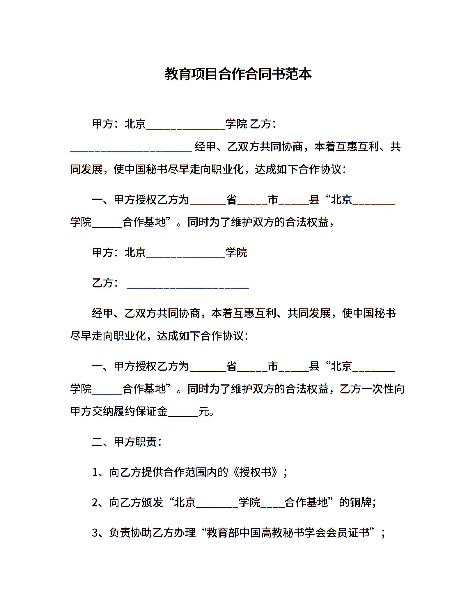 教育项目合作合同书范本