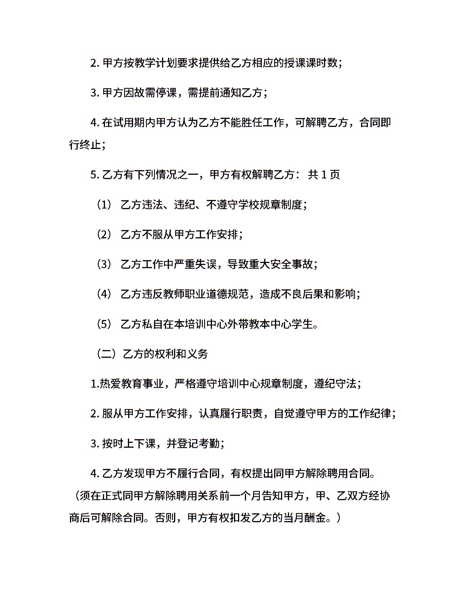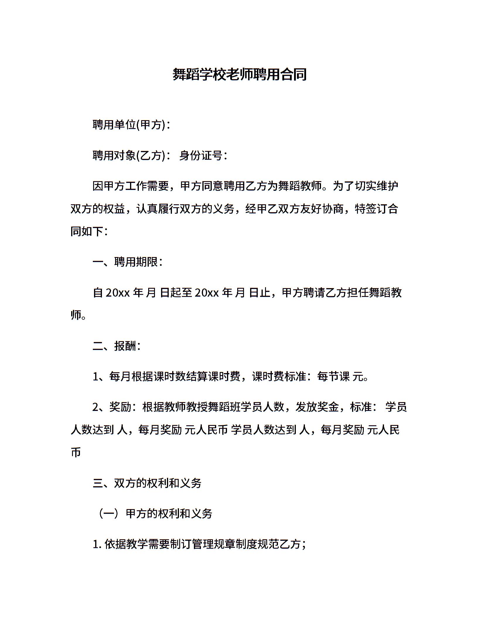 舞蹈学校老师聘用合同