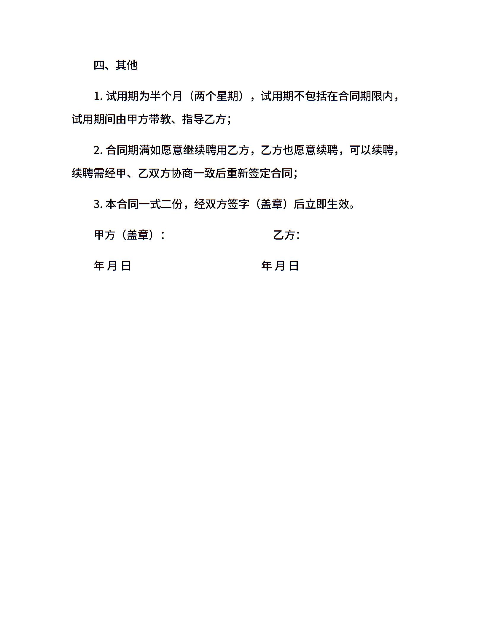 • 分类 聘用合同