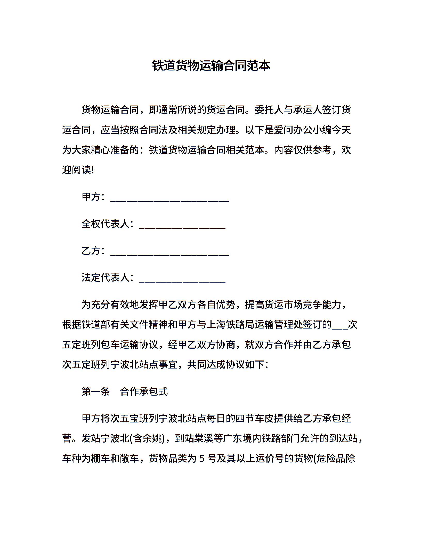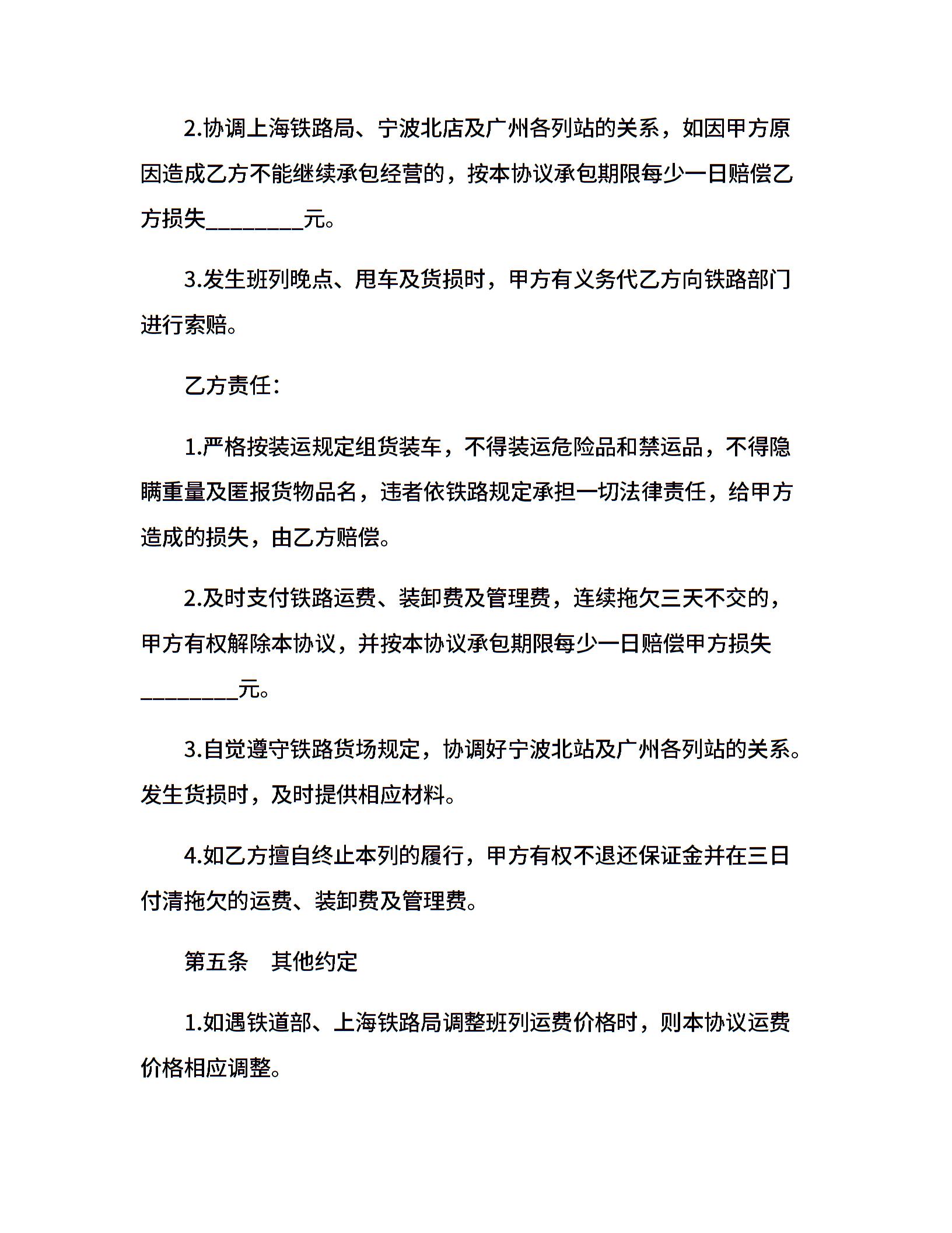 铁道货物运输合同范本