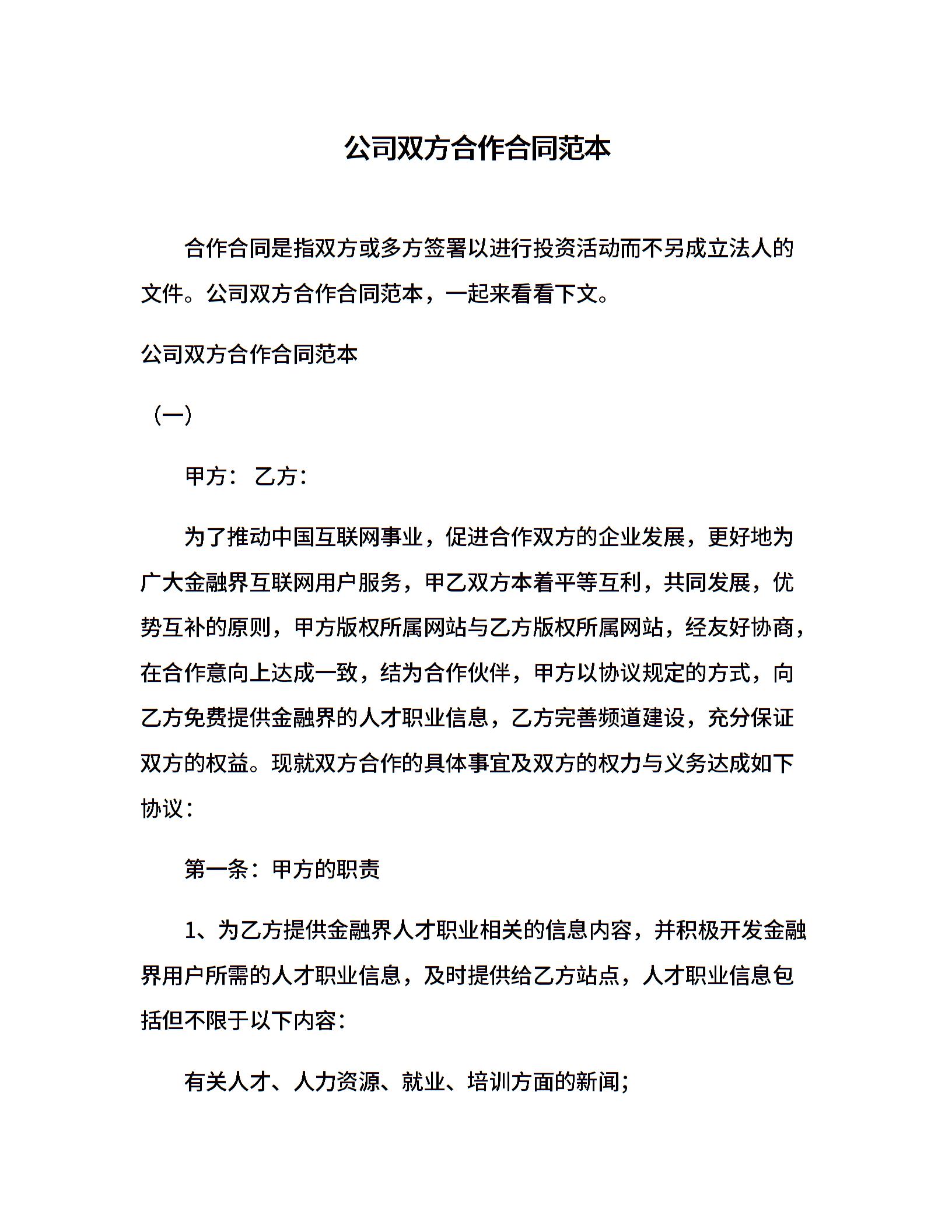 当前位置:量子办公 > 合同模板 > 合作合同 >