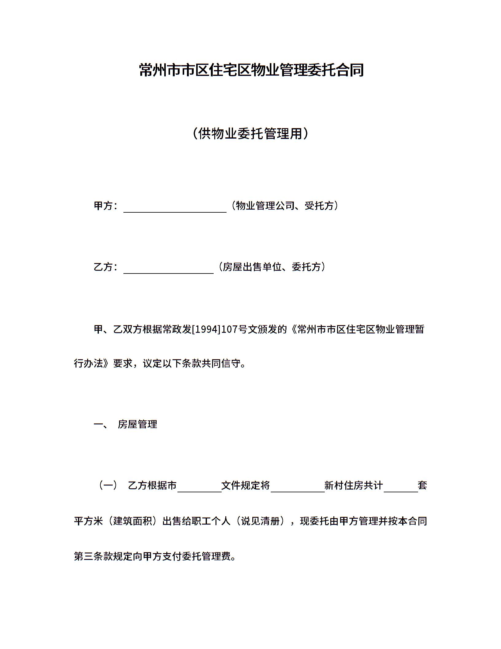 常州市市区住宅区物业管理委托合同(供物业委托管理用)