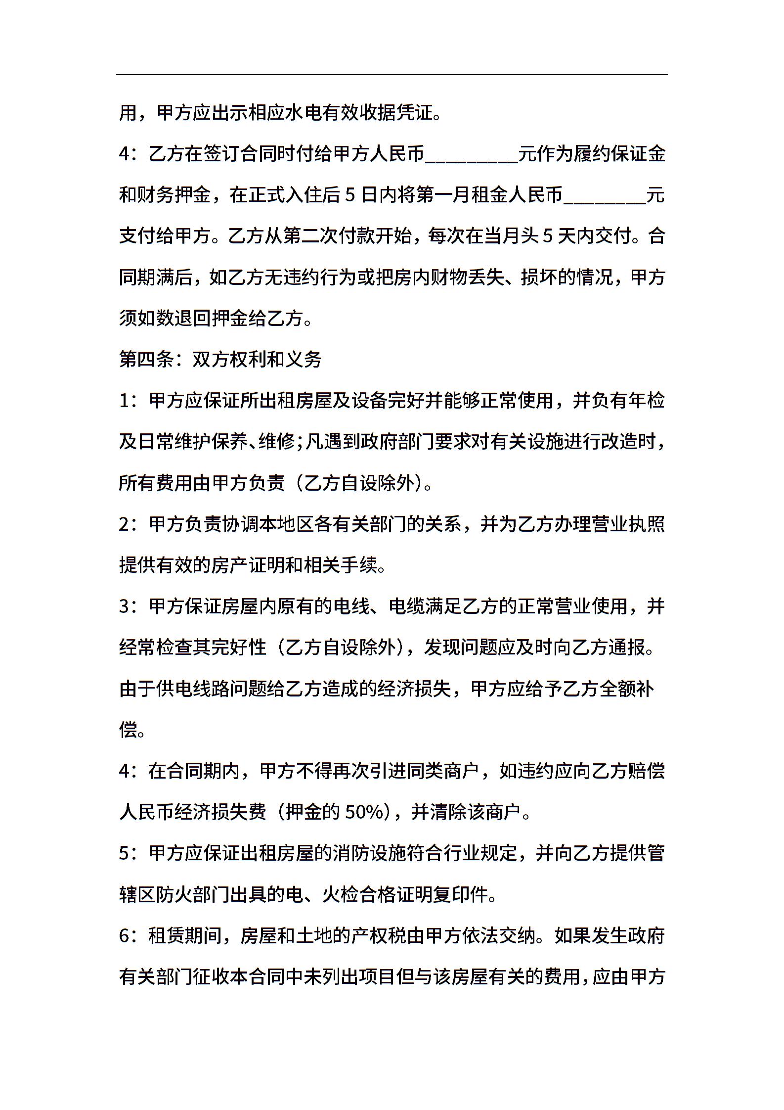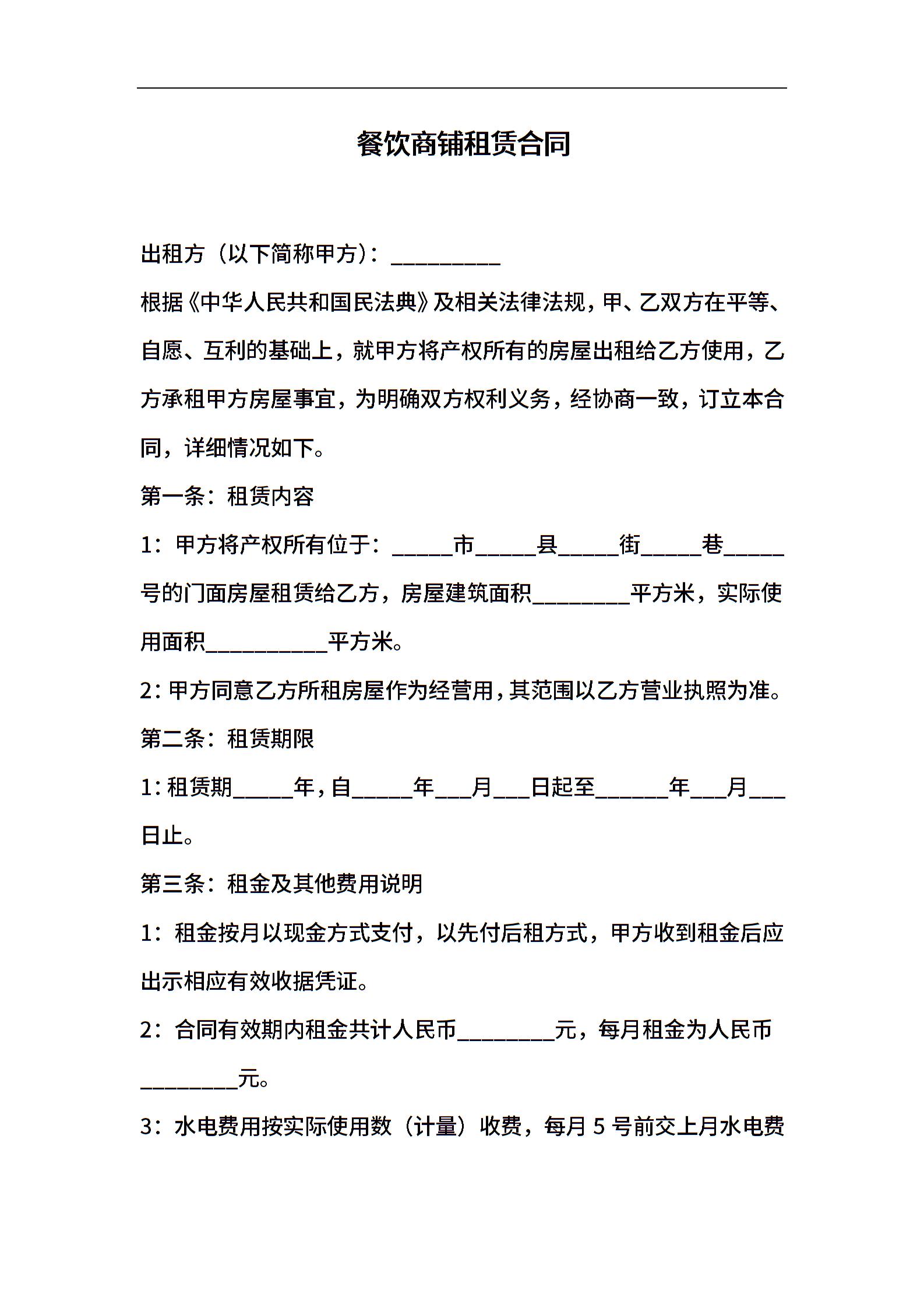 餐饮商铺租赁合同