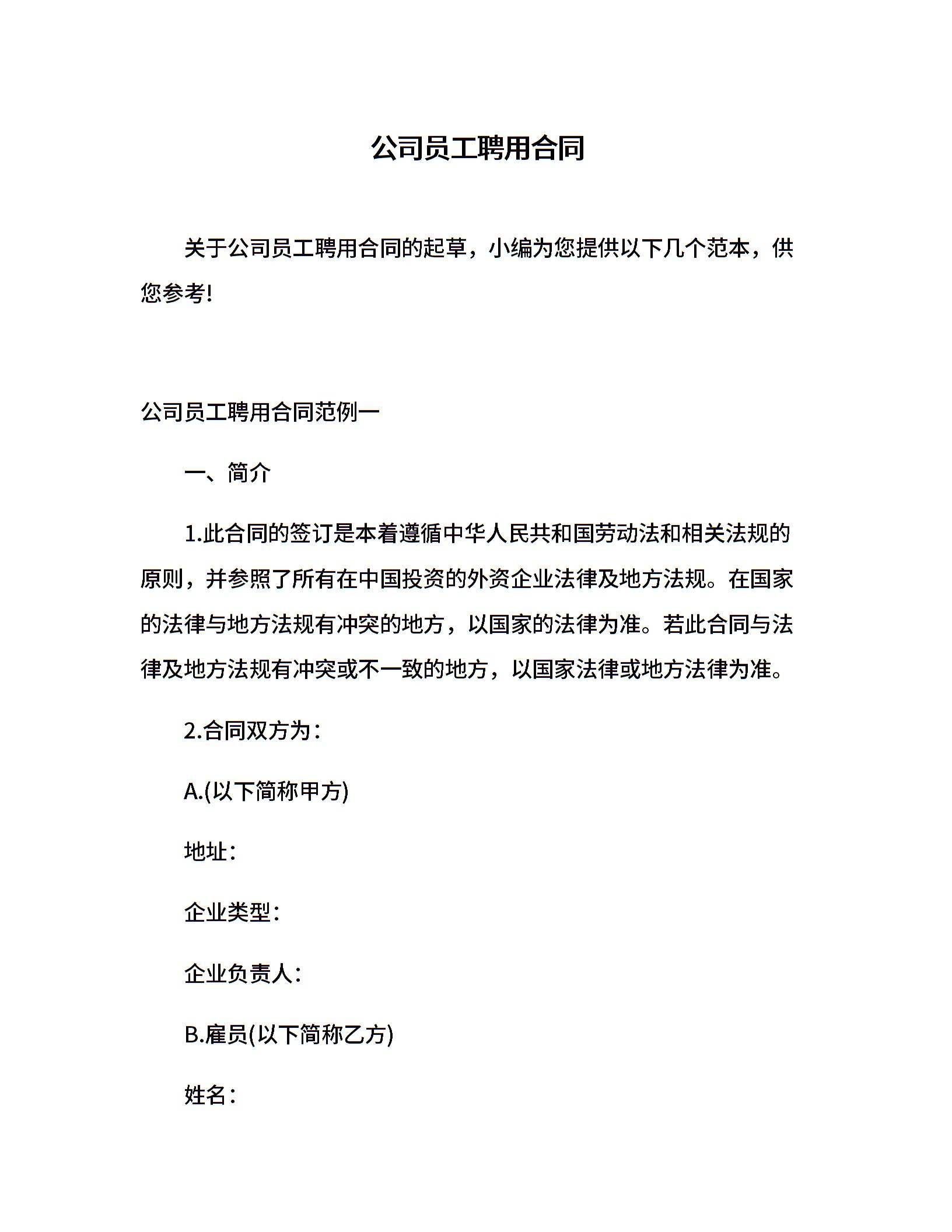 当前位置:量子办公 > 合同模板 > 聘用合同 >