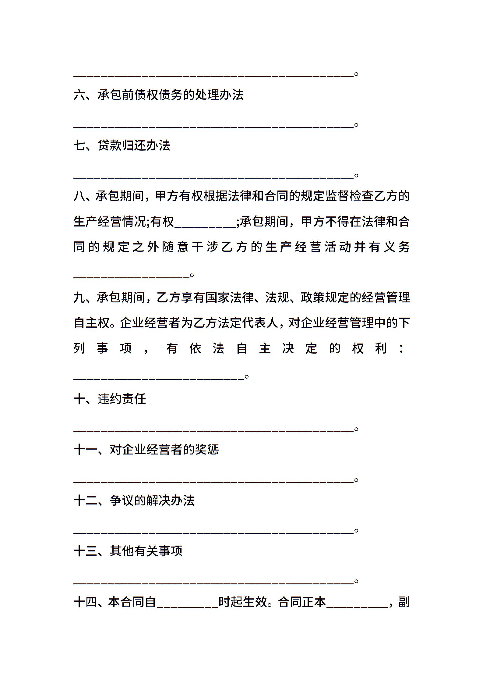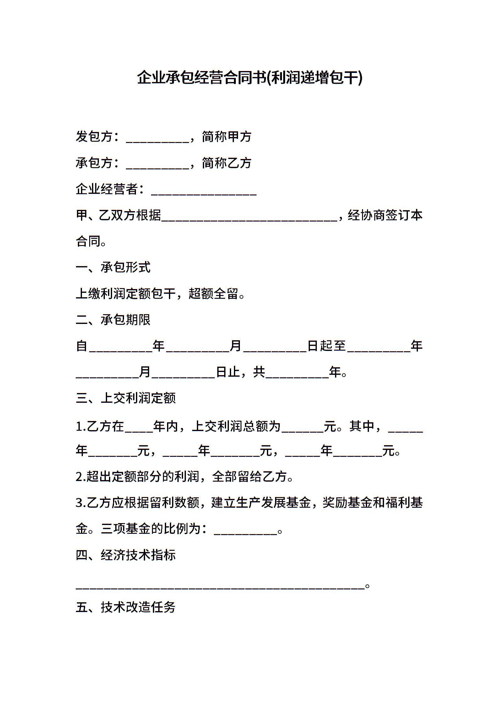 企业承包经营合同书(利润递增包干)