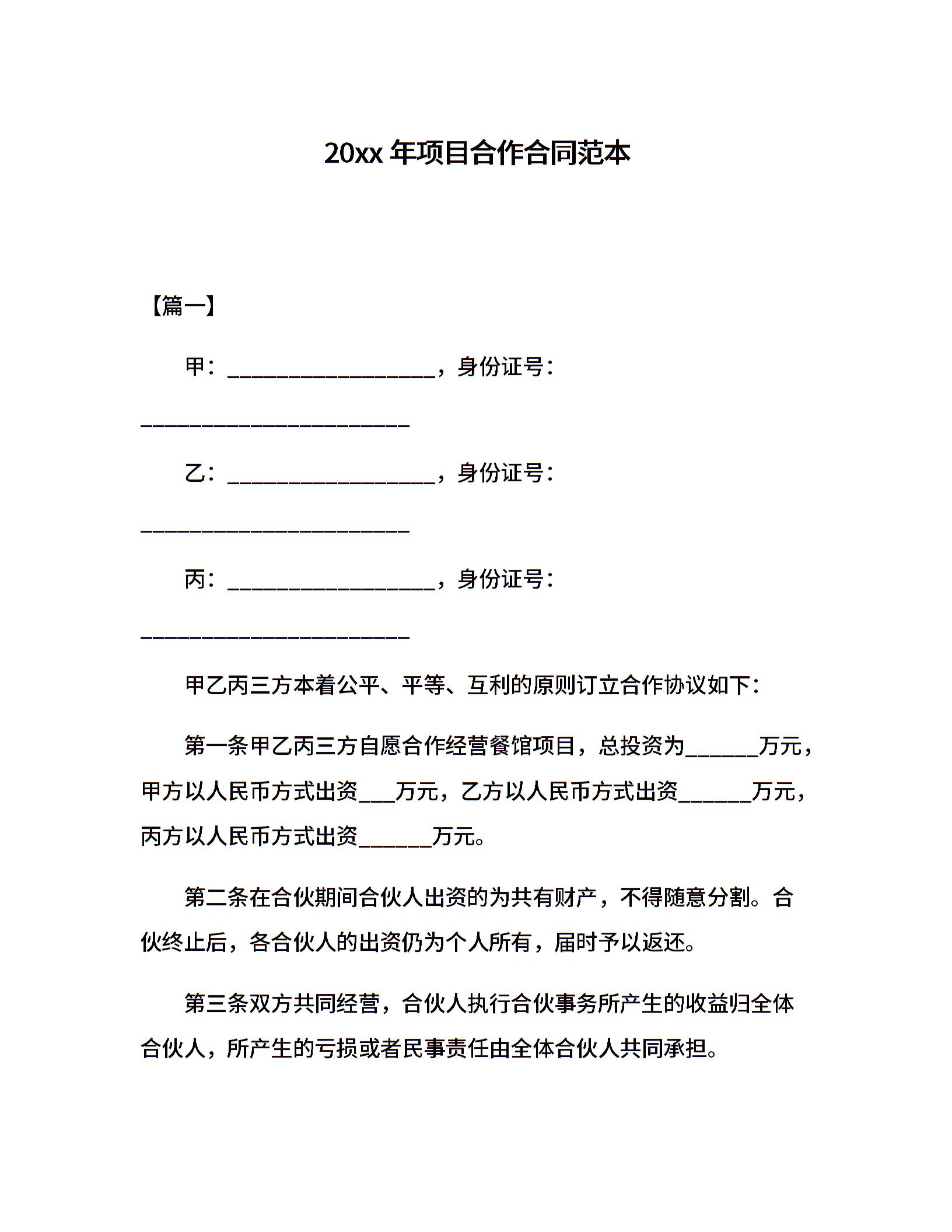 20xx年项目合作合同范本